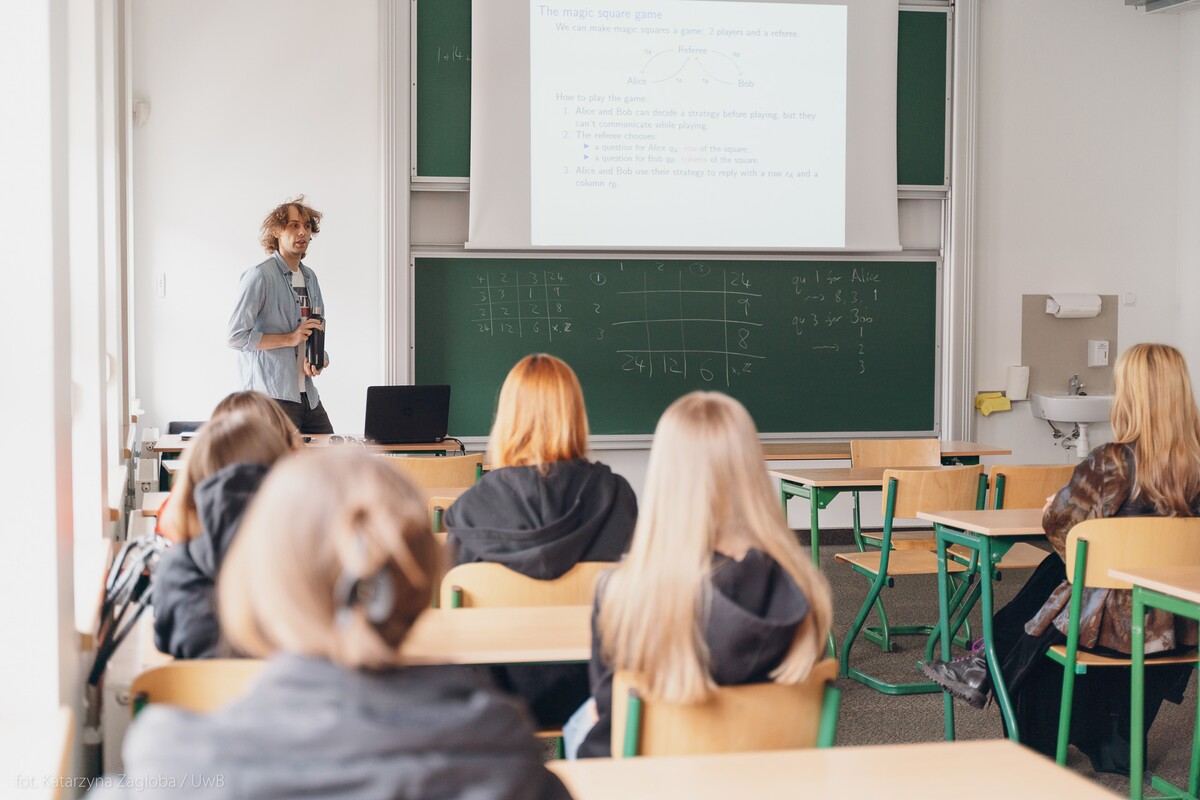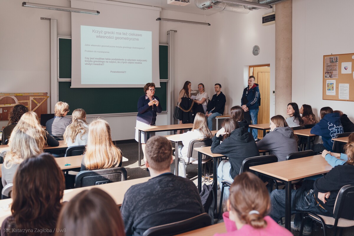 Co ma wspólnego dzielenie pizzy z odkryciami Gaussa? Kto naprawdę rządzi opinią publiczną? Czym jest dezinformacja? Jak zostać współczesnym Sherlockiem Holmsem? Jakie funkcje pełni cytoszkielet? Skąd brać pomysły na biznes? A także interkulturowa i językowa podróż po krajach anglosaskich, filmowe i fotograficzne opowieści z Podlasia czy pokazy z mechaniki. To tylko kilka przykładów tematów zajęć, w których brała udział młodzież ze szkół ponadpodstawowych z województwa podlaskiego.