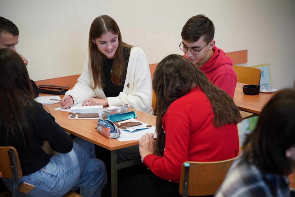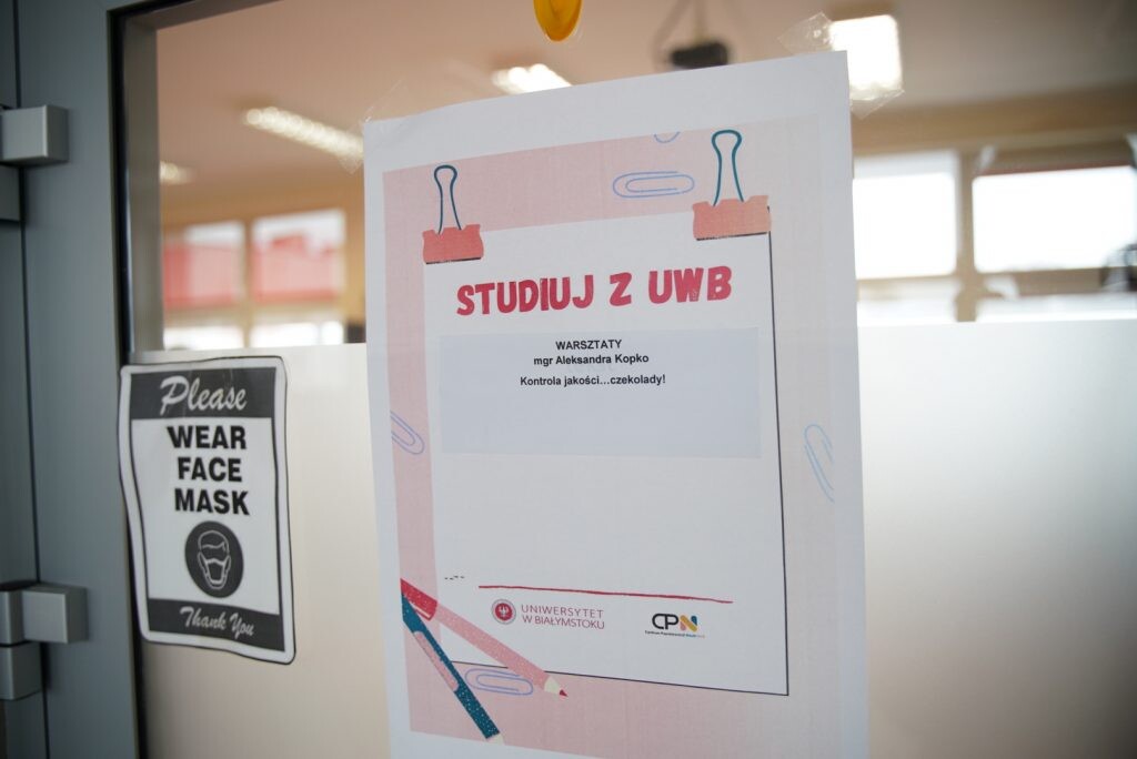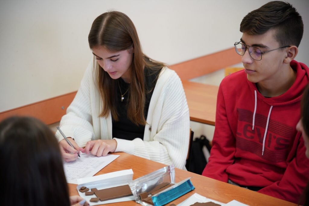 Mgr Aleksandra Kopko z Instytutu Zarządzania przeprowadziła „słodki” warsztat dotyczący kontroli jakości, a produktem kontrolnym była czekolada. Uczniowie połączyli przyjemne z pożytecznym, bo zdobywali wiedzę, porównując ze sobą różne marki czekolad.