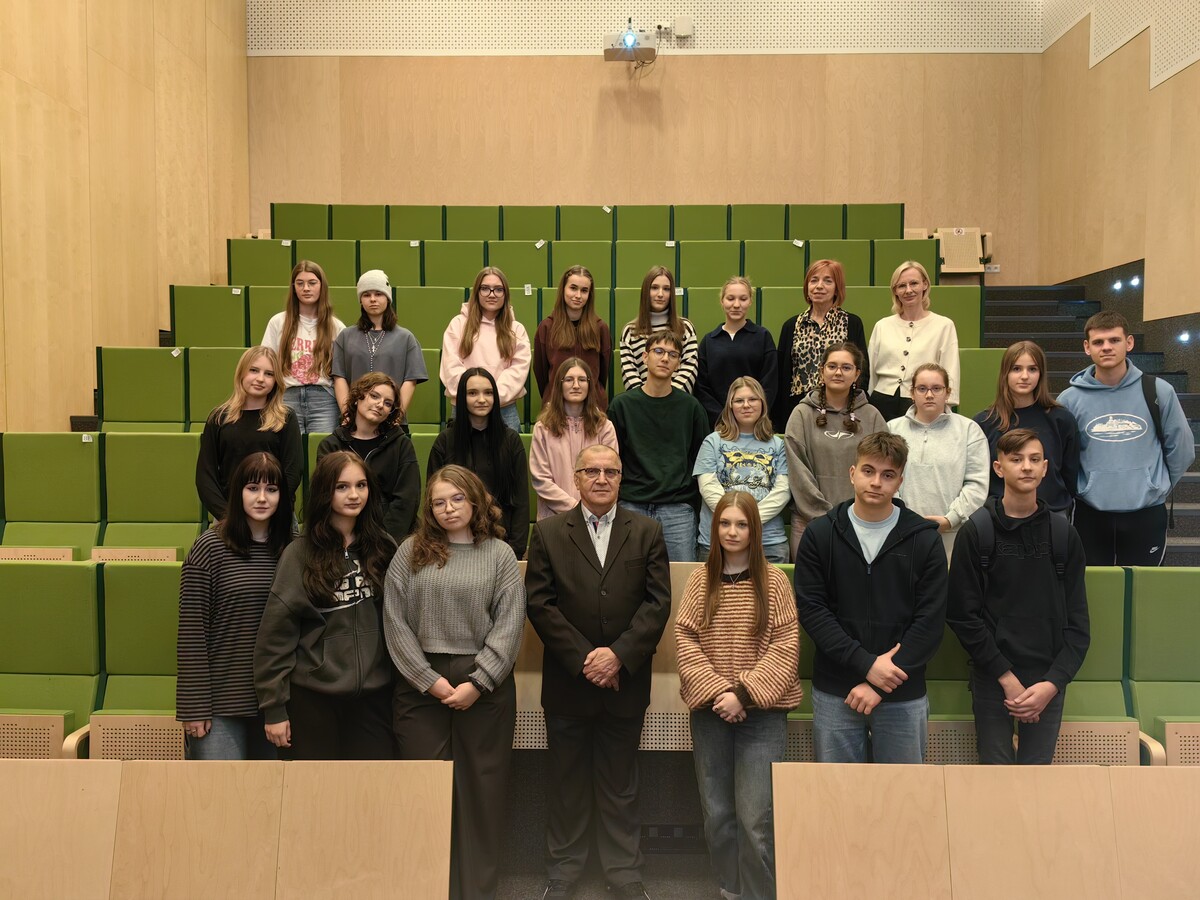 Czy chemii można się bać? co oznacza zjawisko „chemiofobii” i dlaczego otaczający nas świat staje się „schemizowany”? Jakie są korzyści korzystania z osiągnieć chemicznych a jakie mogą być zagrożenia wynikające z przekraczania barier rozsądku? To zagadnienia, które między innymi zostały poruszane podczas Spotkań u Chemików w ramach wykładu prof. dr. hab. Stanisława Witkowskiego pn.”Czy bać się chemii?” dla uczniów I Liceum Ogólnokształcącego im. A. Mickiewicza w Kolnie. W środę, 26 listopada 2025 r. licealiści I LO w Kolnie odwiedzili kampus. Dzięki uprzejmości doktorantów z Katedry Chemii Fizycznej i Katedry Chemii Organicznej uczniowie zostali oprowadzeni po poszczególnych pracowniach laboratoryjnych znajdujących się Wydziale Chemii UwB.