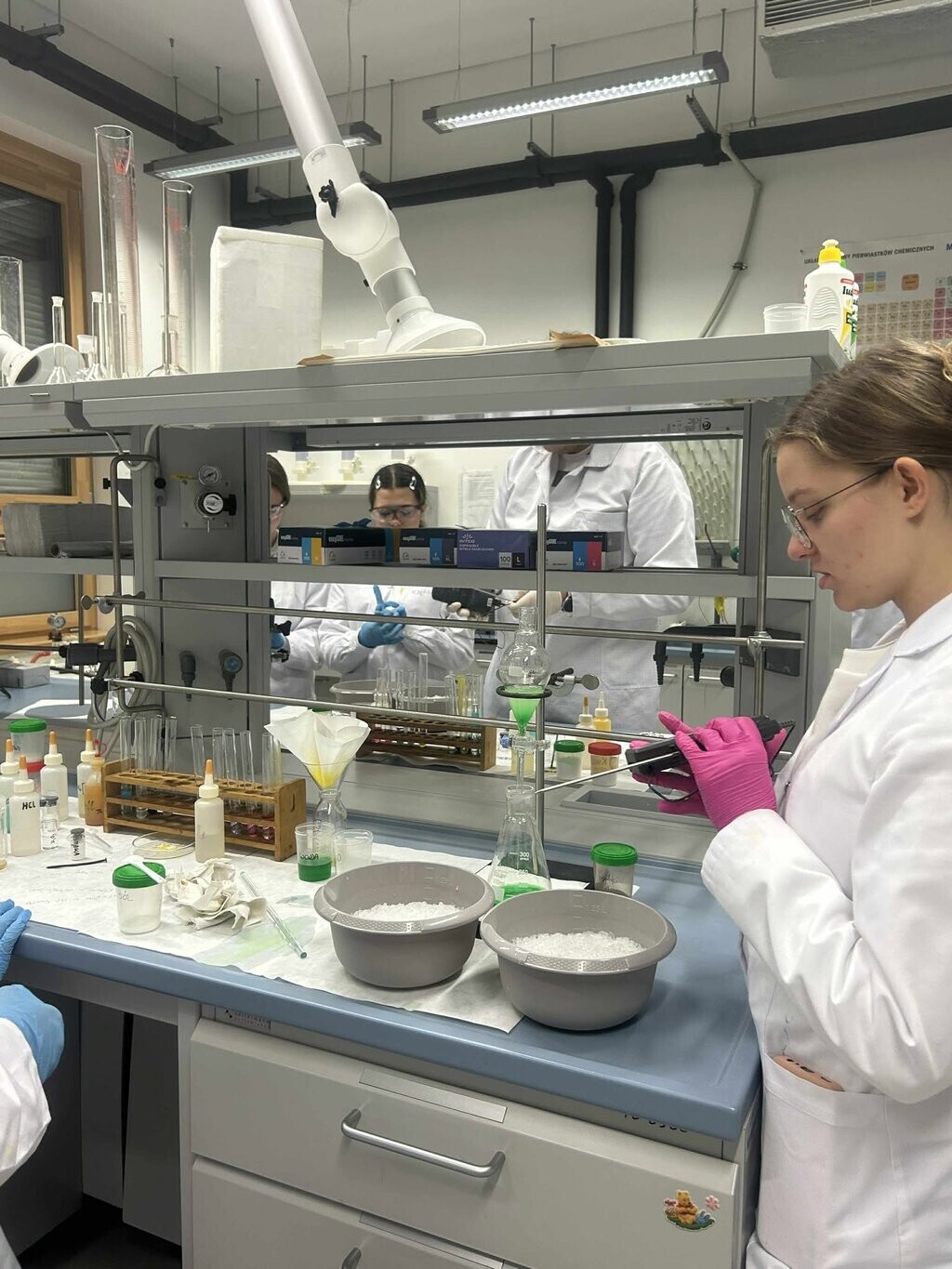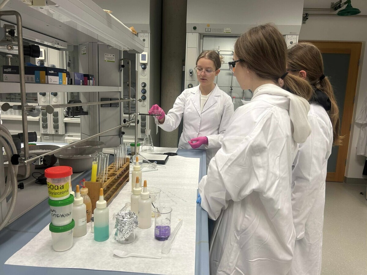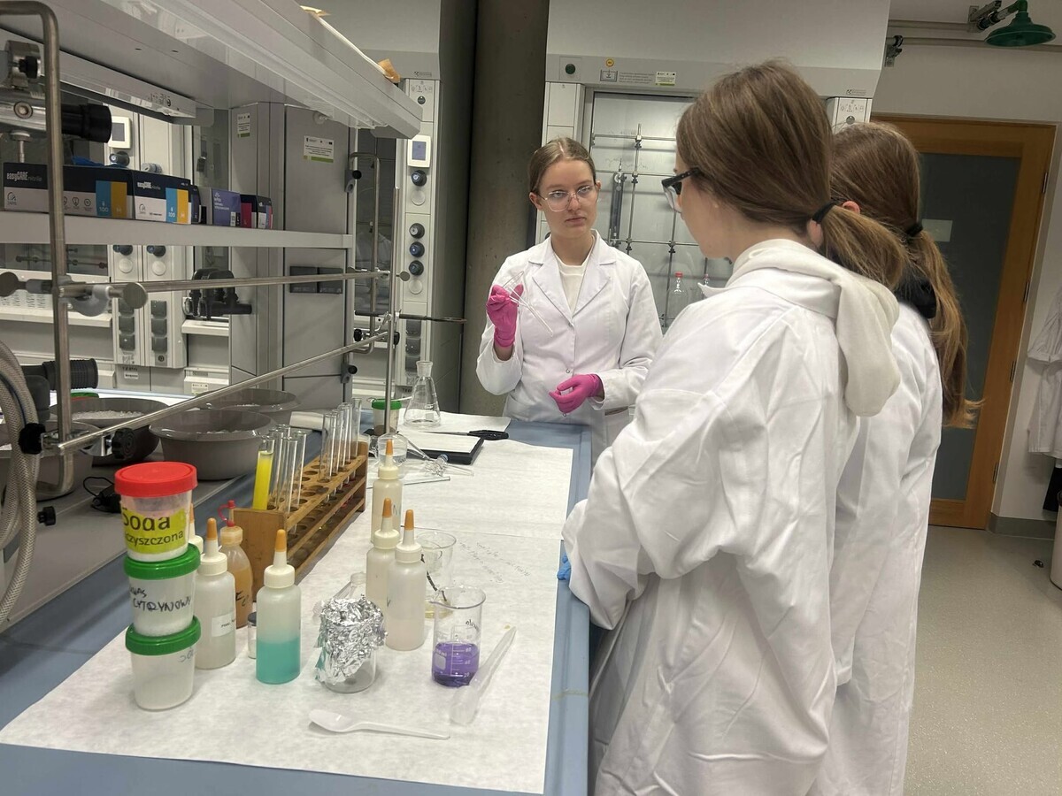 "Eksperymenty, których nie zrobisz w szkole" to warsztaty chemiczne, w których udział wzięli uczniowie klas VII i VIII Niepublicznej Szkoły Podstawowej w Załukach. Zajęcia pod opieką dr. Pawła Misiaka poprowadzili członkowie Koła Naukowego Chemików UwB "Pozyton". We środę, 3 grudnia, młodzież z SP w Załukach w laboratorium chemicznym badała właściwości kwasów i zasad, rozdzielała mieszaniny, prowadziła obserwacje reakcji spalania i elekrolizy. Dzięki profesjonalnym warunkom uczniowie mogli doświadczyć zagadnień z podstawy programowej w praktyce oraz pogłębić wiedzę poprzez aktywny udział w eksperymentach.