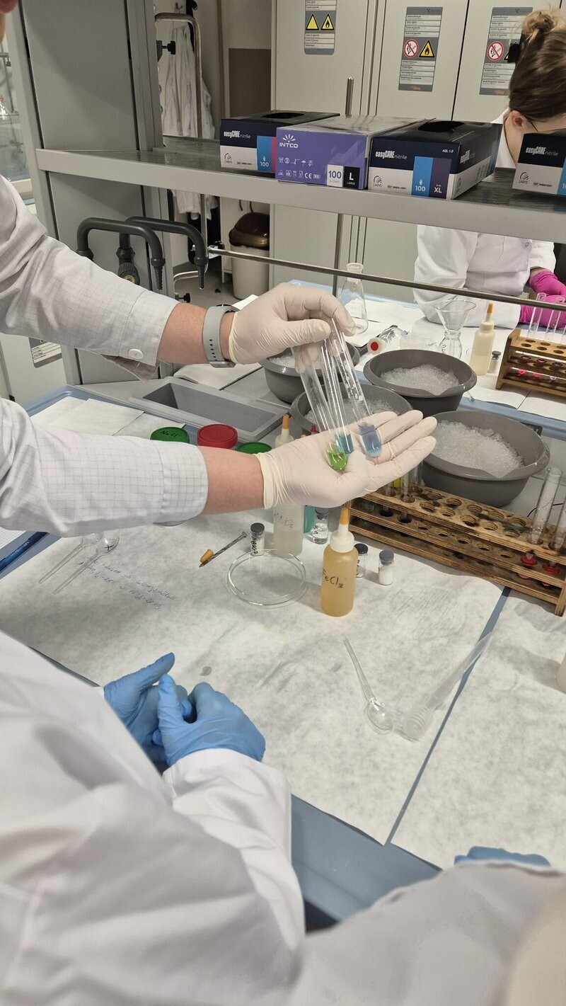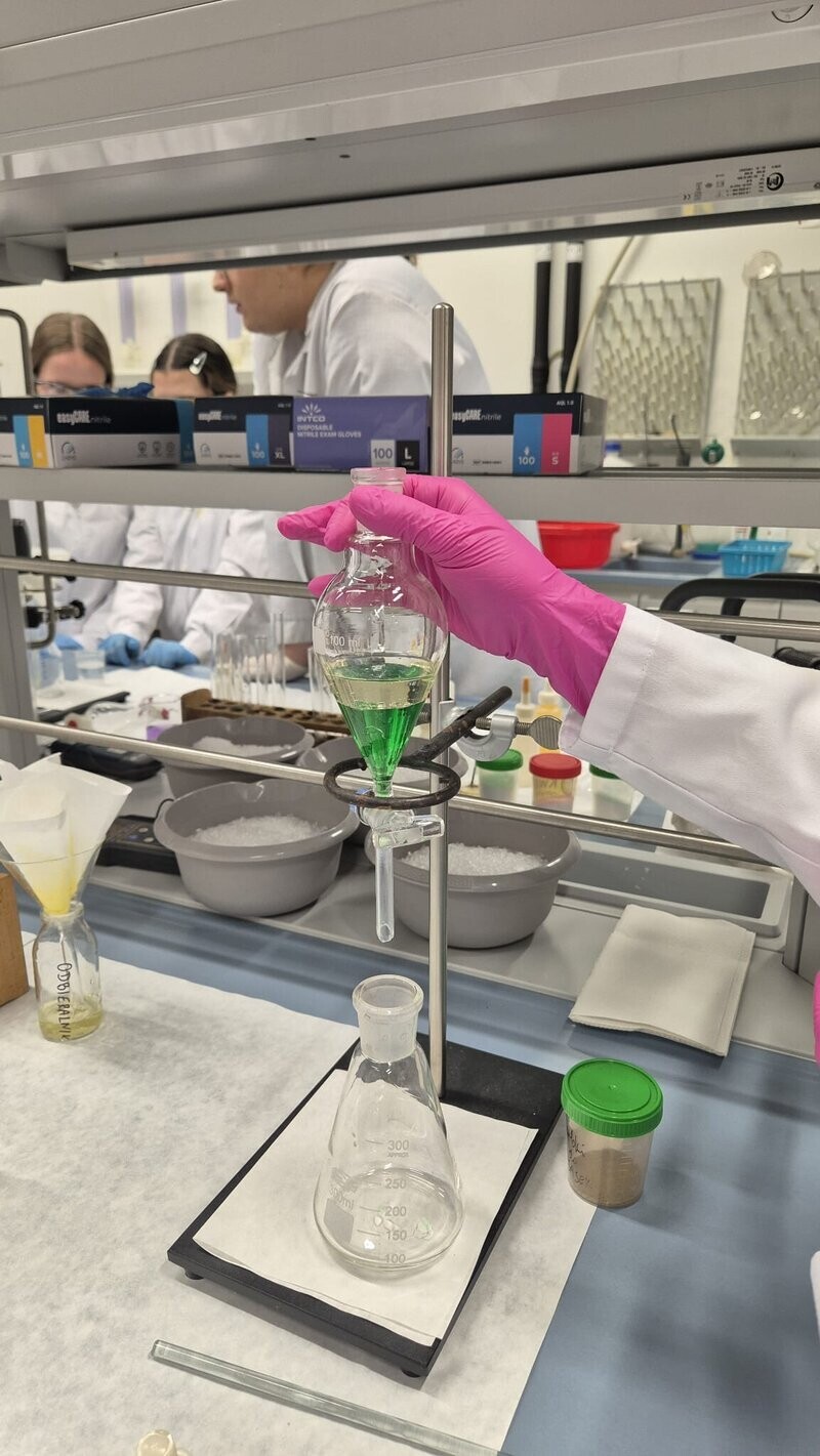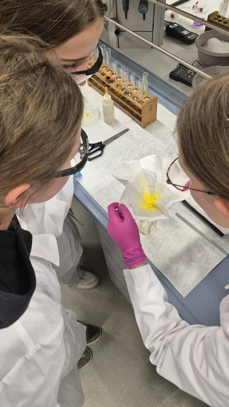 "Eksperymenty, których nie zrobisz w szkole" to warsztaty chemiczne, w których udział wzięli uczniowie klas VII i VIII Niepublicznej Szkoły Podstawowej w Załukach. Zajęcia pod opieką dr. Pawła Misiaka poprowadzili członkowie Koła Naukowego Chemików UwB "Pozyton". We środę, 3 grudnia, młodzież z SP w Załukach w laboratorium chemicznym badała właściwości kwasów i zasad, rozdzielała mieszaniny, prowadziła obserwacje reakcji spalania i elekrolizy. Dzięki profesjonalnym warunkom uczniowie mogli doświadczyć zagadnień z podstawy programowej w praktyce oraz pogłębić wiedzę poprzez aktywny udział w eksperymentach.