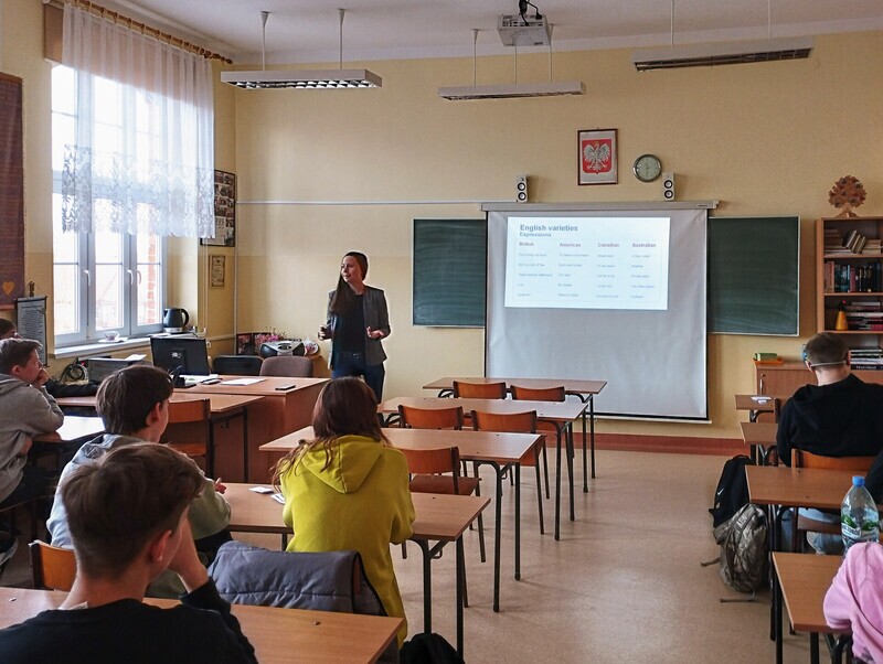 Był też warsztat dotyczący zwyczajów i obyczajów w krajach anglojęzycznych, który poprowadziła w języku angielskim dr Anna Sańczyk-Cruz z Wydziału Filologicznego UwB. Na spotkaniu pojawiły się elementy wiedzy z zakresu językoznawstwa, kultury i historii.