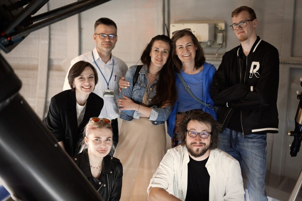 Po opowieściach o niezwykłych kosmicznych wydarzeniach, które dzieją się nieco ponad 100 km nad naszymi głowami, Karol Wójcicki odwiedził Planetarium i Obserwatorium Uniwersytetu w Białymstoku. Z zainteresowaniem obejrzał możliwości prezentacji filmów 3D na kopule planetarium. Dzięki dr hab. Markowi Nikołajukowi, prof. UwB i specjalnemu programowi nasz gość „podróżował” po Układzie Słonecznym. Potem wspólnie ze studentami z Astronomicznego Koła Naukowego Karol Wójcicki oglądał nowoczesny teleskop w obserwatorium. Były też plany wspólnych projektów i działań.
