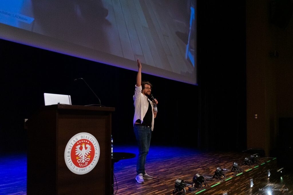 Jesteśmy świadkami, a nawet uczestnikami kosmicznej rewolucji – przekonywał dzisiaj (11 maja) w Białymstoku Karol Wójcicki, pasjonat i popularyzator astronomii, dziennikarz naukowy, prezenter telewizyjny. Twórca największego w Polsce astronomicznego fanpage „Z głową w gwiazdach” na Facebooku wystąpił podczas XVIII Podlaskiego Festiwalu Nauki i Sztuki z energetycznym wykładem „Kosmiczna rewolucja”.