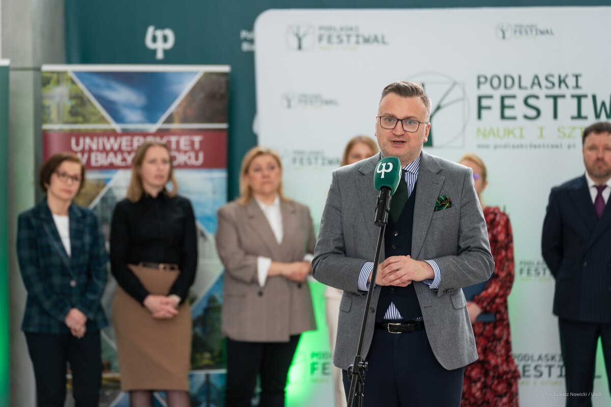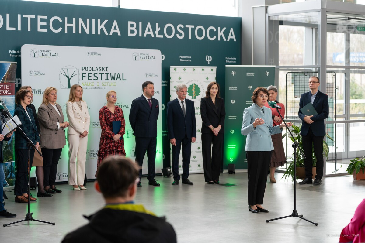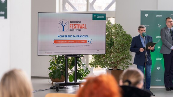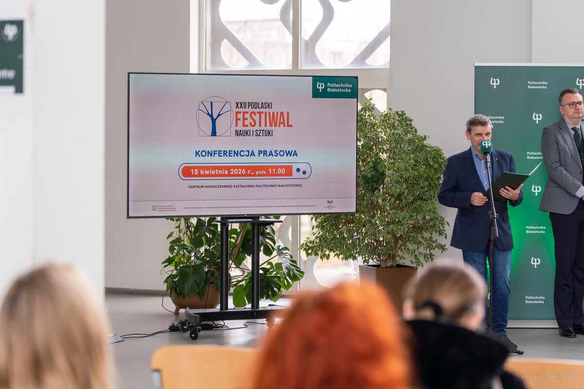 W środę, 15 kwietnia 2026 r. w siedzibie Politechniki Białostockiej, która w tym roku jest koordynatorem głównym Festiwalu, odbyła się konferencja prasowa dotycząca tegorocznej edycji. Uniwersytet reprezentowała dr hab. Agnieszka Piekutowska, prof. UwB prorektor uczelni ds. nauki i współpracy międzynarodowej.