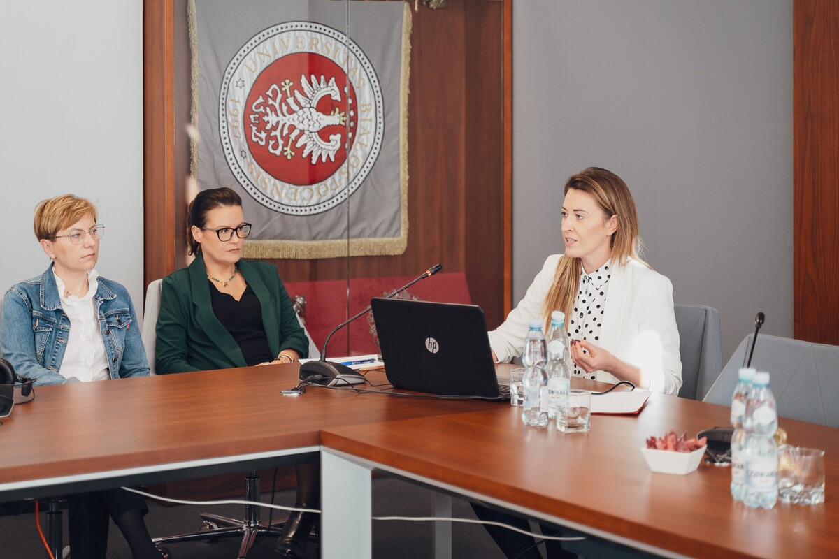 W spotkaniu z dyrektorami szkół uczestniczyli również: prorektor ds. studentów i doktorantów dr hab. Anna Gardocka-Jałowiec prof. UwB – która prowadziła spotkanie, prorektor ds. kształcenia dr hab. Krzysztof Korotkich prof. UwB, dr Anna Szuchalska z Wydziału Filologicznego, mgr Eliza Krotke – kierownik Studium Praktycznej Nauki Języków Obcych UwB oraz przedstawiciele Działu Promocji UwB.