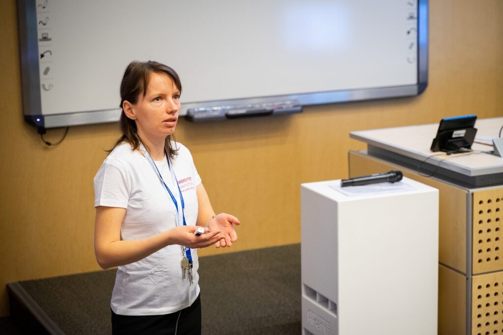 Z uczniami, którzy odwiedzili w czwartek kampus, spotkała się też na zajęciach pt. „Odkoduj marzenia w Instytucie Informatyki – proste algorytmy szyfrujące”.