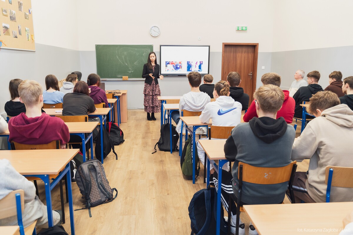 O imionach dzieci polskich celebrytów – modnych tendencjach i klasyfikacji mówiła dr Anetta Strawińska z Wydziału Filologicznego (Katedra Stylistyki i Lingwistyki Antropologicznej). Celem wykładu była próba uszeregowania oryginalnych imion dzieci rodzimych celebrytów według utrwalonych w literaturze przedmiotu standardów opisu systemu imienniczego. Dziecko w świecie celebrity to jeden „z wielu gadżetów”. O przedmiotowym traktowaniu dzieci, zdaniem psychologów i socjologów, świadczy nadawanie potomstwu niekonwencjonalnych imion. Między innymi takie aspekty były poruszane i wspólnie omawiane wraz z uczniami podczas spotkania.