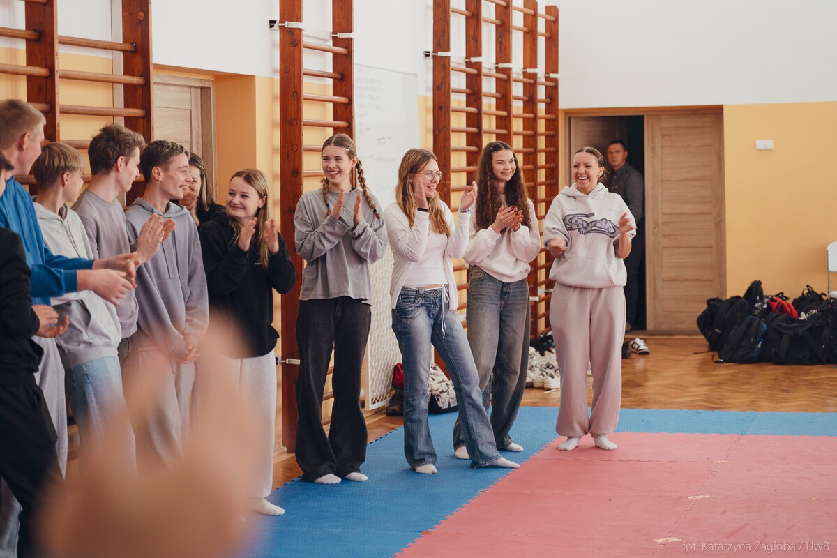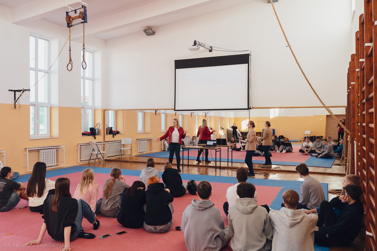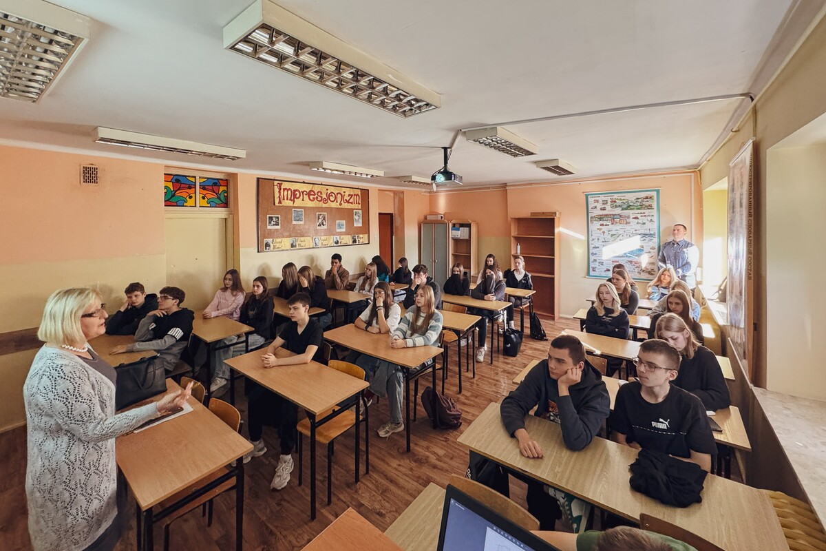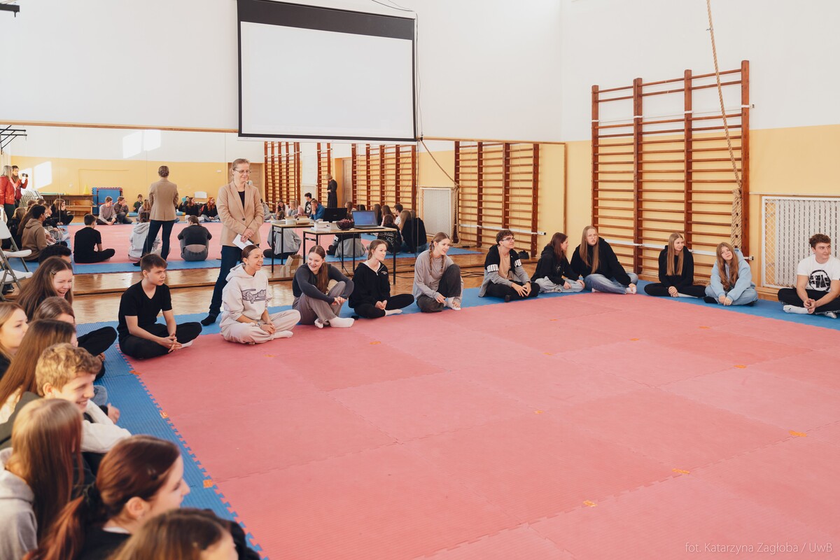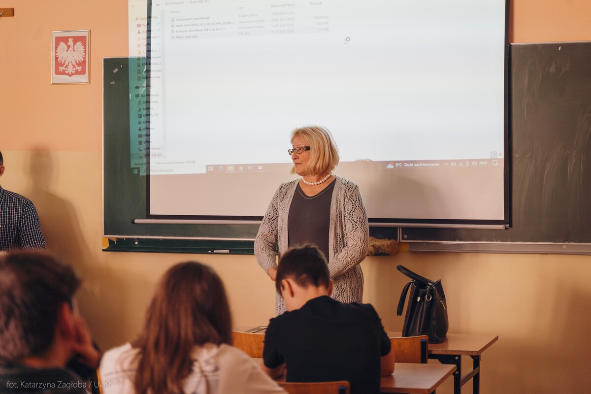 W poniedziałek 4 listopada z młodzieżą spotkały się reprezentantki kadry akademickiej z Wydziału Filologicznego, z Katedry Badań Filologicznych „Wschód-Zachód”, wraz ze studentkami filologii rosyjskiej. O życiu i twórczości klasyki literatury rosyjskiej Aleksandra Puszkina rozmawiały z młodzieżą dr Anna Alsztyniuk oraz dr hab. Anna Sakowicz. O zwyczajach, obrzędach oraz wschodniosłowiańskim nazewnictwie związanym z Wigilią Bożego Narodzenia w gwarach Białostocczyzny opowiadała dr Nina Raczkiewicz. Do interaktywnych zajęć sprawdzających znajomość języka rosyjskiego zaprosiła młodzież dr Olga Anchimiuk. Uczniowie mieli okazję w praktyce sprawdzić swoje umiejętności językowe w quizach i grach integracyjnych. Na koniec dwie studentki filologii rosyjskiej, Sylwia Radziwon oraz Paula Krzywicka, opowiedziały o studiowaniu na Uniwersytecie w Białymstoku oraz o możliwościach, jakie proponuje uczelnia przyszłym studentom.
