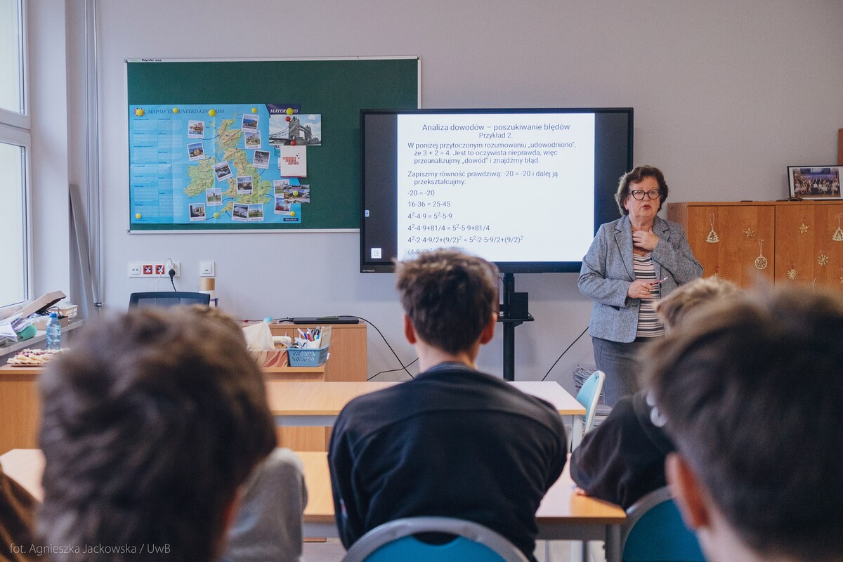 Jakie są dowody na to, że 2+2 = 5, a 1 zł = 1 gr? Podczas warsztatów pt. ”Szukamy błędów w rozumowaniach” dr Anna Rybak z Wydziału Matematyki wraz z młodzieżą szukała dowodów dla faktów zdecydowanie nieprawdziwych utrwalając prawa działań na liczbach oraz wzory skróconego mnożenia wykorzystując przy tym arytmetykę i algebrę.