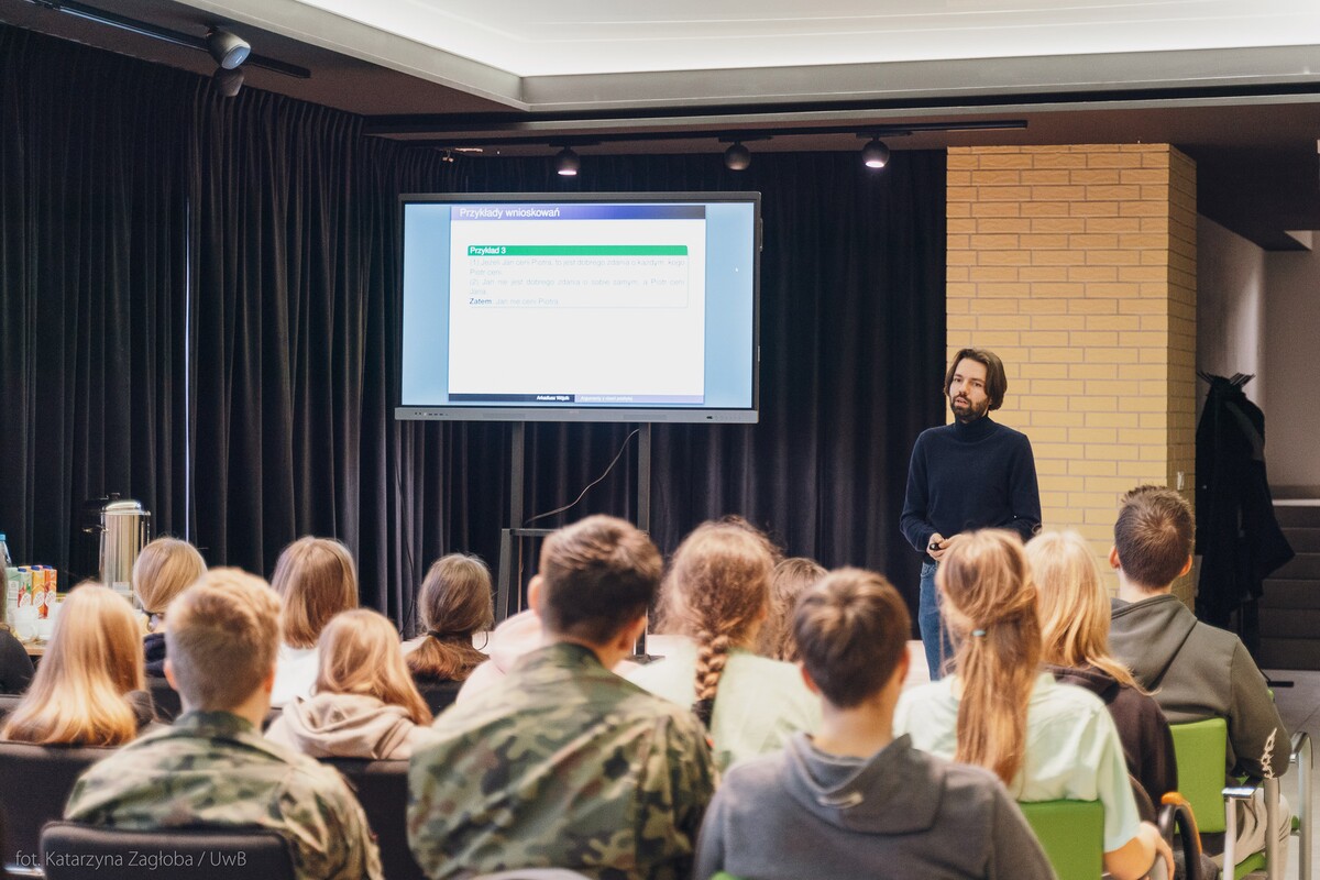 Nostalgia i melancholia w twórczości Taylor Swift, argumenty z równi pochyłej, błędy w rozumowaniach i tłumaczenie tekstów literackich, to tematy poruszone w czwartek 19 grudnia wśród młodzieży Zespołu Szkół w Sokółce w ramach akcji Studiuj z UwB. W spotkaniu łącznie wzięło udział 13 klas!