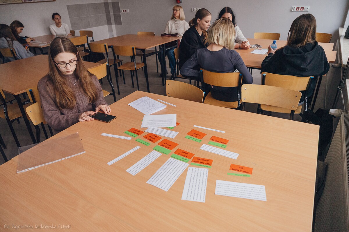 Dodatkowo młodzież wzięła udział w ćwiczeniach interaktywnych z języka angielskiego. Warsztaty tłumaczeniowe przeprowadziła mgr Eliza Krotke z Wydziału Filologicznego. Uczniowie pracowali nad tłumaczeniem fragmentów prozy i poezji, była mowa o najnowszych trendach w sztuce przekładu.