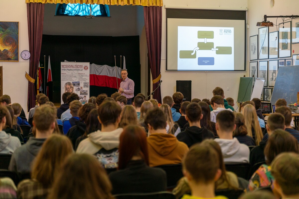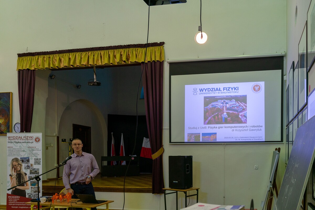 W czwartek, 16 marca z młodzieżą w I Liceum Ogólnokształcącym z Oddziałami Dwujęzycznymi im. M. Konopnickiej w Suwałkach spotkali się wykładowcy, studenci i pracownicy Wydziału Filologicznego, Wydziału Fizyki, Instytutu Filozofii, Uniwersyteckiego Centrum Rekrutacji, Centrum Popularyzacji Nauki oraz Działu Promocji.