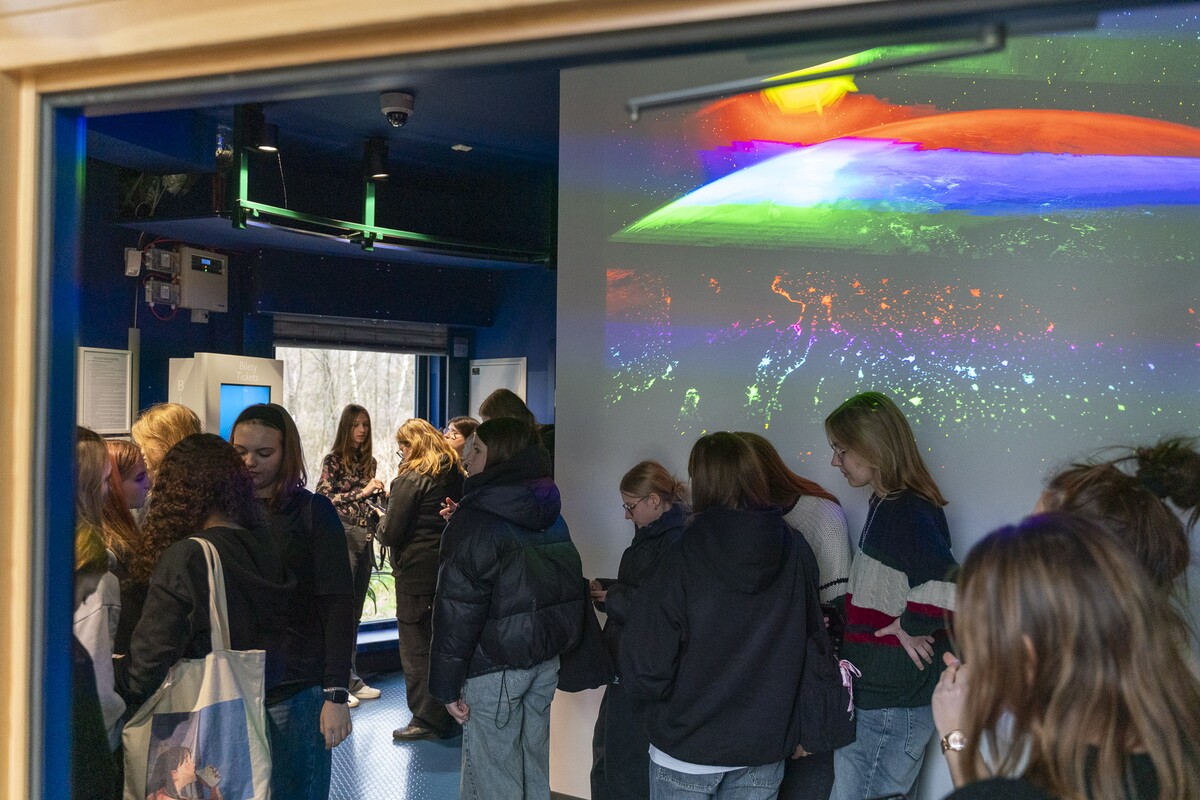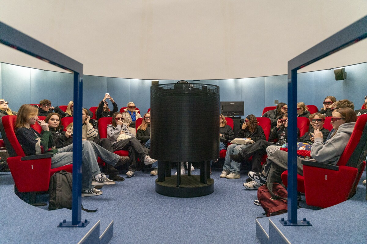 Na koniec uczniowie wybrali się na seans „Halo, Ziemia” do Planetarium, który opowiada o szeroko pojętym rozwoju komunikacji, począwszy od pisma, po radio, telefon, telegraf, aż po Internet i sondy kosmiczne.