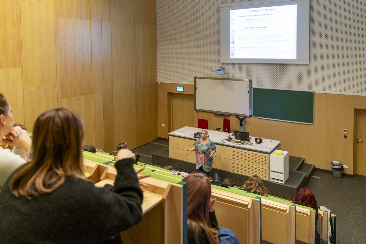 Z młodzieżą spotkała się także prof. dr hab. Agnieszka Wilczewska z Wydział Chemii, a jej wykład dotyczył m.in. tworzyw sztucznych, plastikowych opakowań i gospodarowania odpadami. Czy wszystkie polimery są „sztuczne”? Czy każdy z nas może mieć wpływ na ilość odpadów „produkowanych” w naszych domach? Czy potrafimy dobrze zarządzać segregacją śmieci? Podczas wykładu uczniowie usłyszeli odpowiedzi na nurtujące pytania na temat tworzyw opakowaniowych, ich recyklingu oraz racjonalnego gospodarowania odpadami.