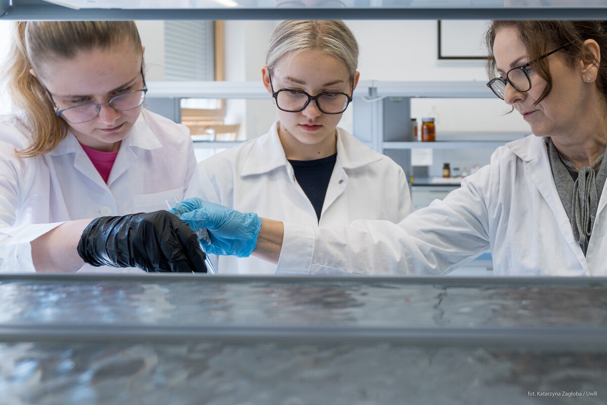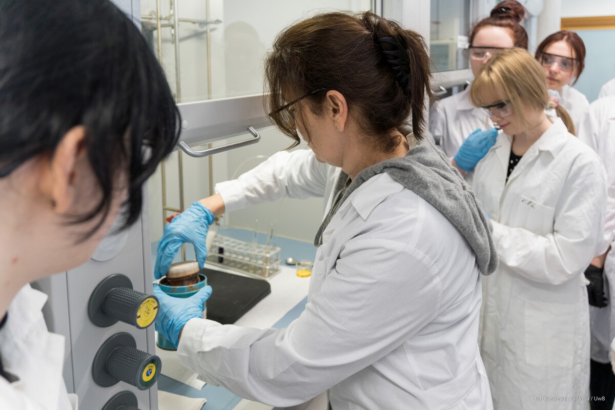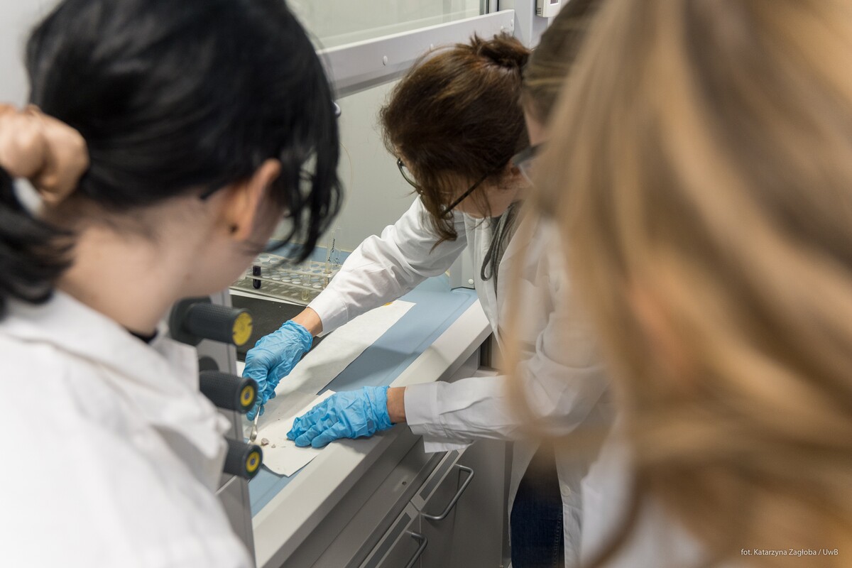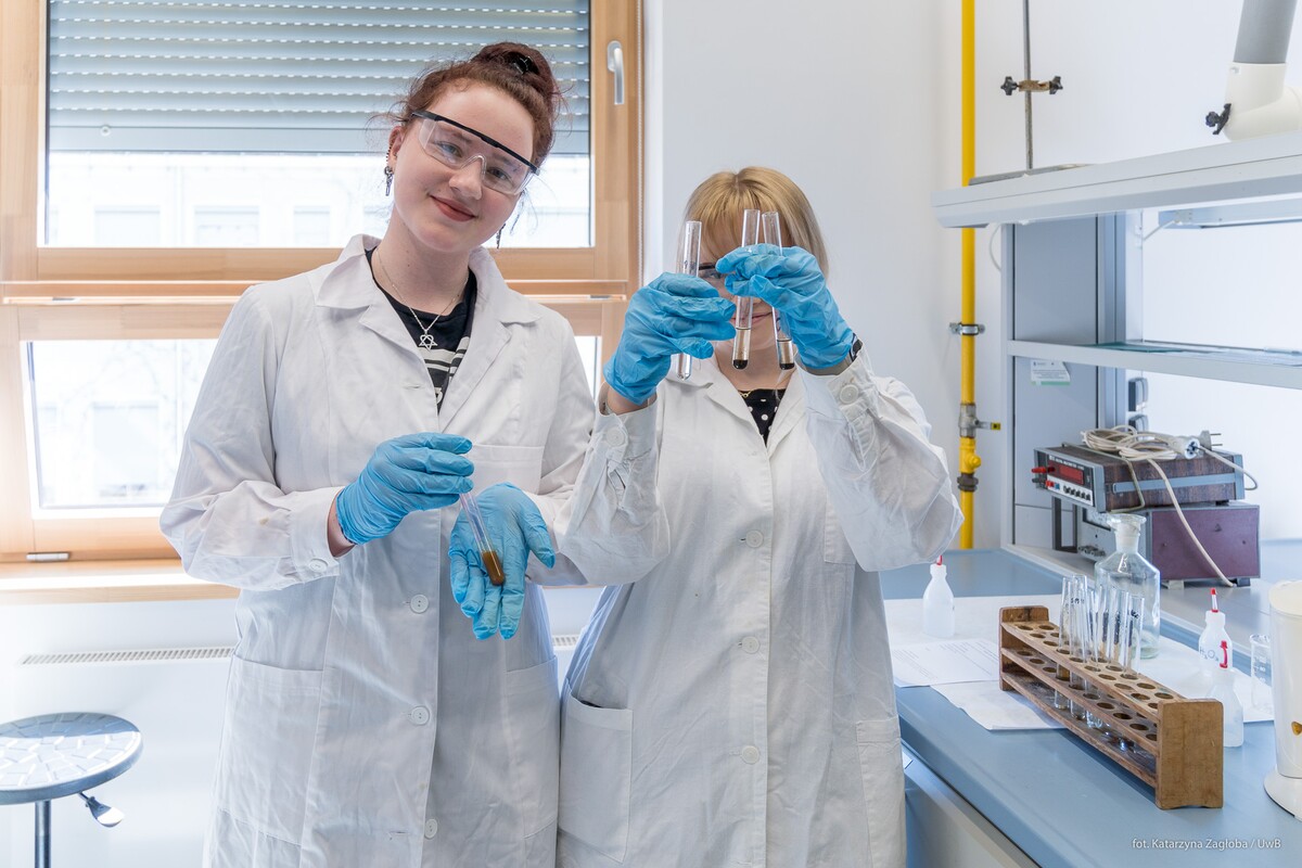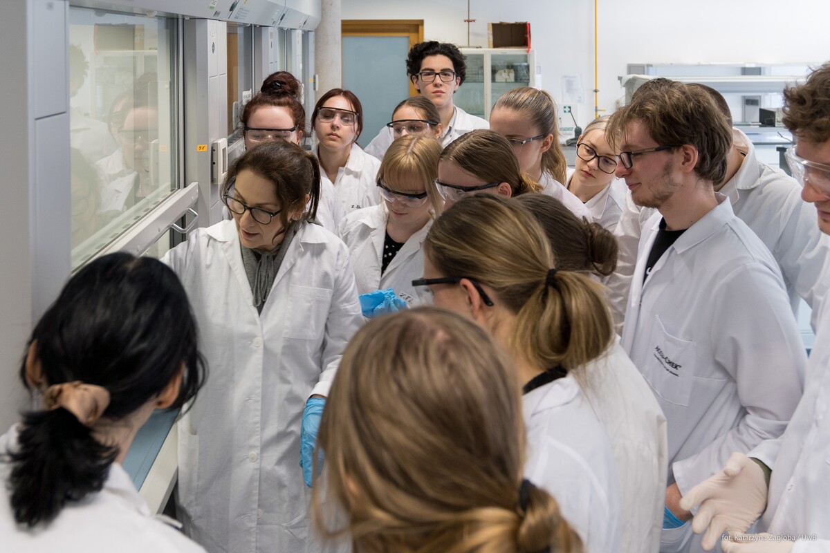 1 i 2 kwietnia 2026r. na Wydziale Chemii Uniwersytetu w Białymstoku w ramach „Spotkań u Chemików” gościliśmy uczniów z I Liceum Ogólnokształcącego im. Adama Mickiewicza w Białymstoku. Uczniowie z pasją wzięli udział w warsztatach laboratoryjnych , podczas których samodzielnie wykonywali eksperymenty dotyczące właściwości wybranych związków nieorganicznych i organicznych. Spotkanie było doskonałą okazją do praktycznego poznania zagadnień omawianych na lekcjach i przydatnych do matury oraz rozwijania zainteresowań naukowych poprzez aktywny udział w eksperymentach. Zajęcia odbywały się pod czujnym okiem dr hab. Izabeli Dobrzyńskiej, prof. UwB oraz dr Anny Sankiewicz.