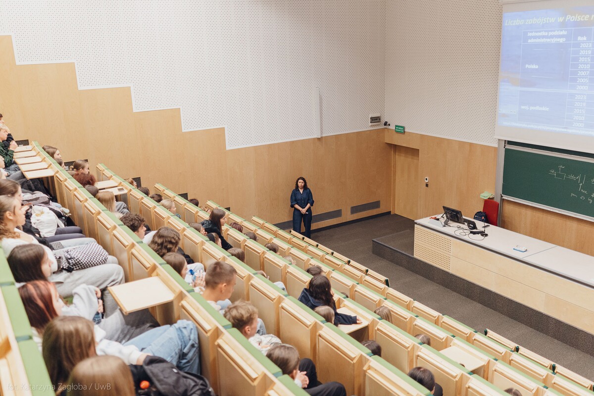 Czy istnieje przestępstwo doskonałe? Jakie są metody identyfikacji śladów kryminalistycznych? Jakie tajemnice kryje ludzki mózg? Jak studiuje się na Uniwersytecie w Białymstoku? W piątek 25 października dr Elżbieta Zambrzycka – Szelewa z Wydziału Chemii oraz dr Marek Bartoszewicz z Wydziału Biologii spotkali się z uczniami Zespołu Szkół Nr 3 im. Jana Kochanowskiego w Wyszkowie. Na koniec Piotr Jakubowicz, student V roku Wydziału Prawa, opowiadał o studiowaniu na UwB oraz odpowiadał na pytania młodszych kolegów i koleżanek z Wyszkowa.