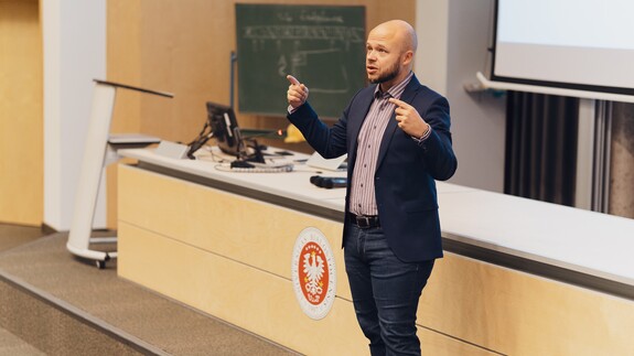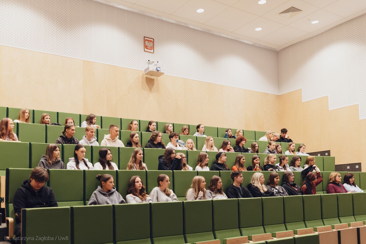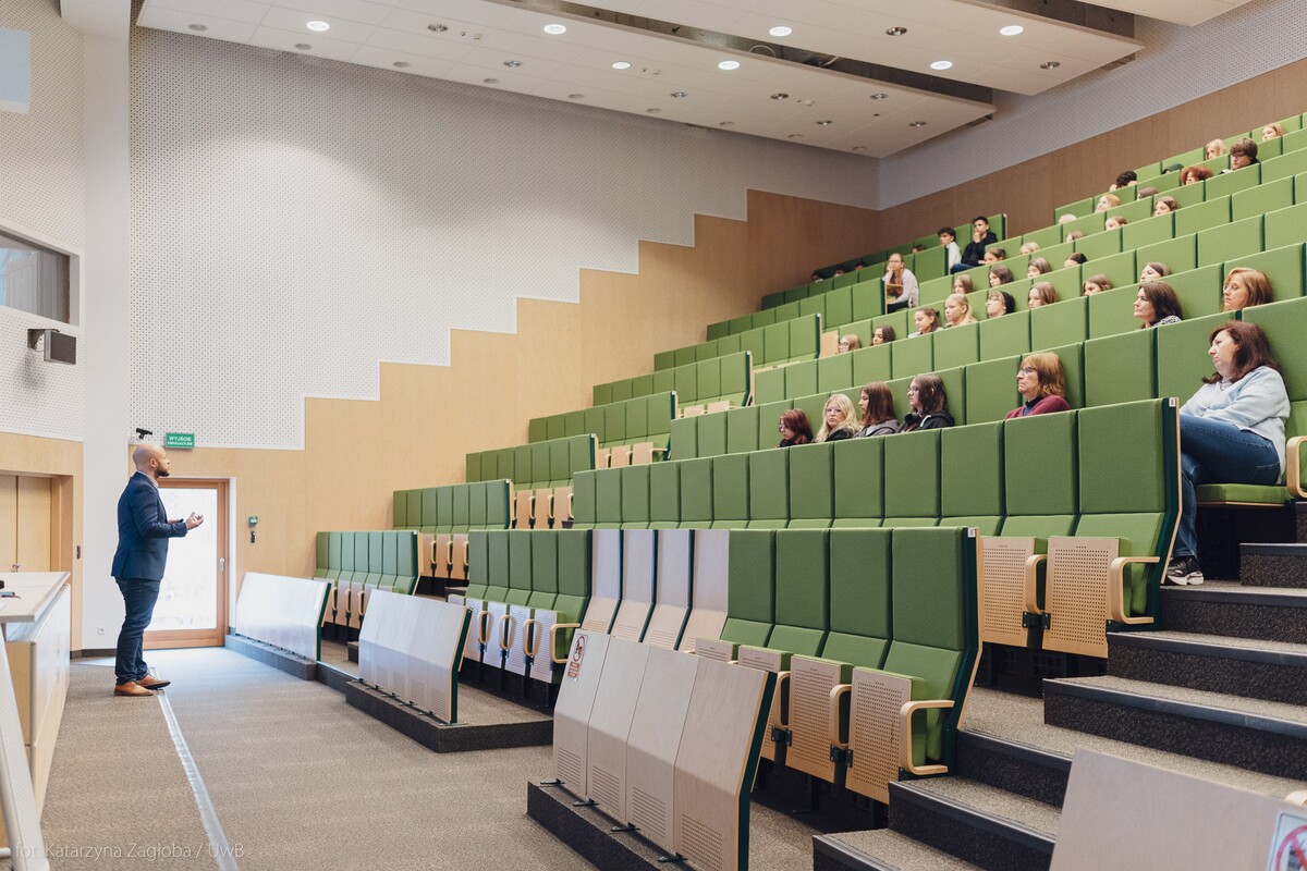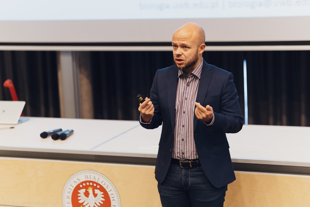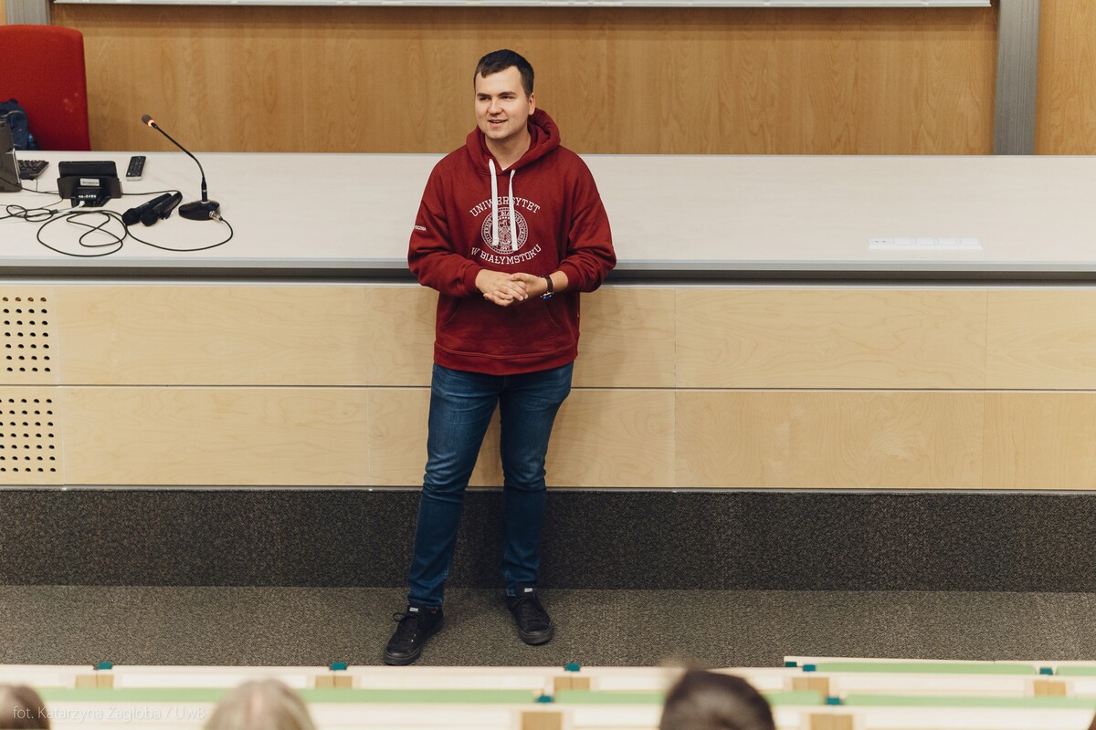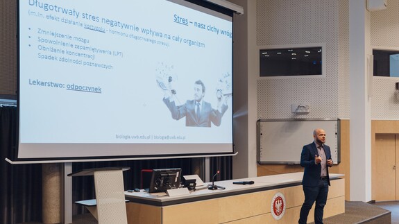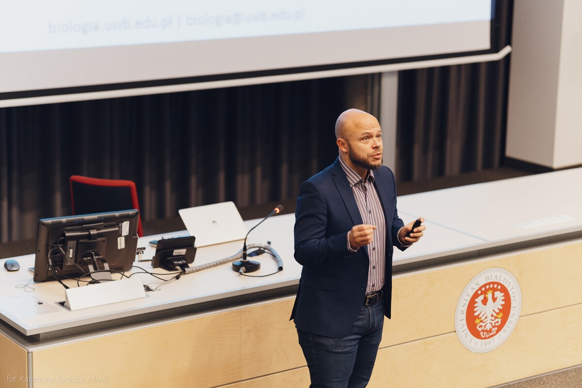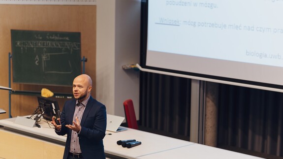 Z kolei dr Marek Bartoszewicz z Wydziału Biologii, prodziekan ds. studenckich i rozwoju, zaprosił młodzież na wykład pn.”Tajemnice ludzkiego mózgu”, na którym uczniowie dowiedzieli się o wielu faktach i mitach z zakresu neurobiologii. Dr Bartoszewicz wyjaśniał, w jaki sposób się uczymy, dlaczego musimy spać oraz jak rodzą się wspomnienia i marzenia. Nie zabrakło ciekawostek dotyczących budowy i działania układu nerwowego. Młodzież lepiej zrozumiała jak skomplikowaną strukturą jest mózg. W ramach wykładu przedstawione zostały przykłady neuroodmienności, m.in. zagadnienia dotyczące osób z zespołem Aspergera. Na koniec wykładu uczniowie dowiedzieli się jakie są konkretne sposoby skutecznego uczenia się.