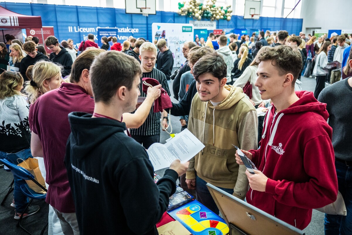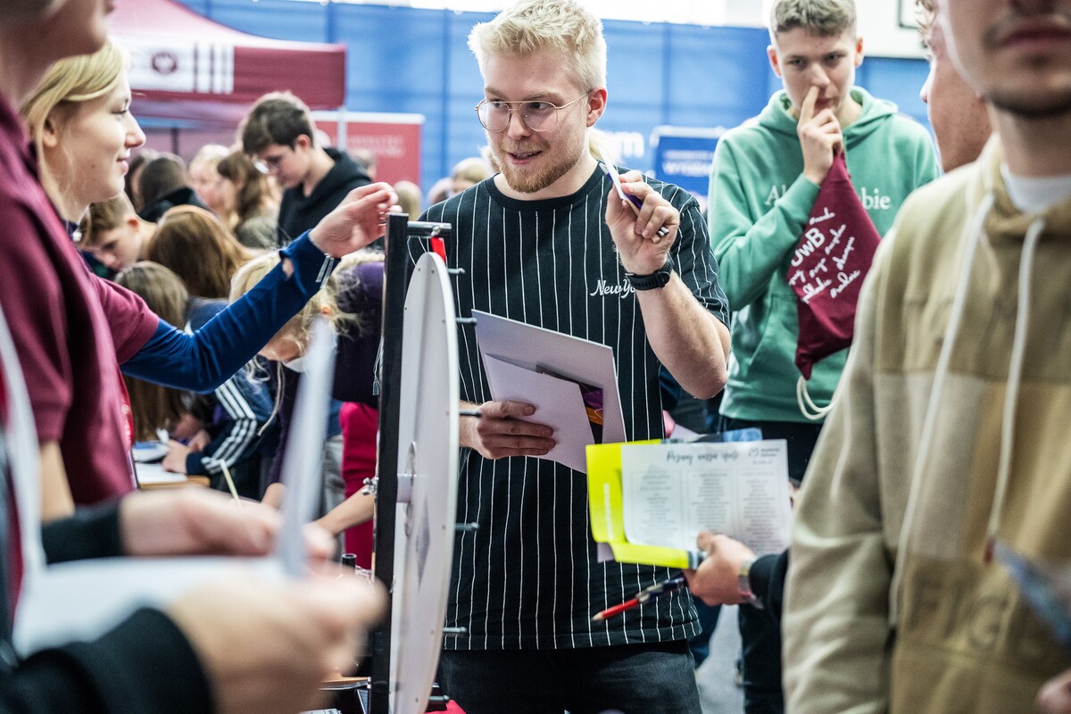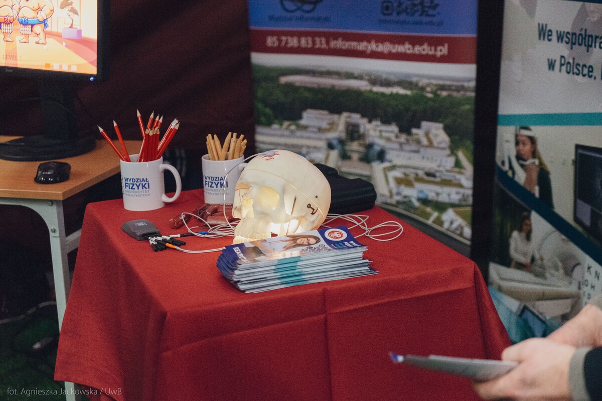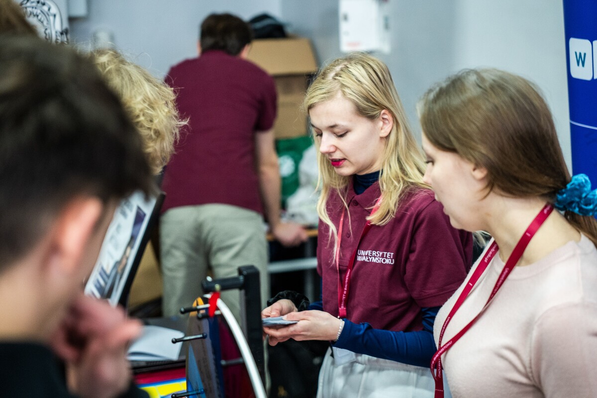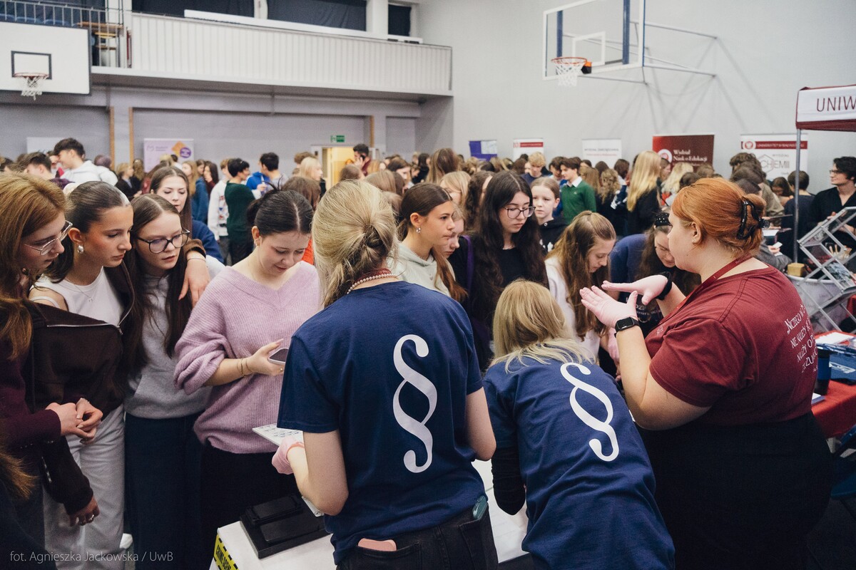 Wiele pytań, angażujących rozmów, interakcji. W czwartek, 23 stycznia reprezentanci 13 wydziałów Uniwersytetu w Białymstoku oraz Uniwersyteckiego Centrum Rekrutacji spotkali się z uczniami II LO im. Księżnej Anny z Sapiehów Jabłonowskiej w Białymstoku. Nasze stoisko cieszyło się olbrzymim zainteresowaniem. Uczniowie zadawali mnóstwo pytań, chętnie rozmawiali z naszymi studentami, brali też udział w aktywnościach, które przygotowały wydziały. W ofercie UwB były też ciekawe wykłady, które przyciągnęły tłumy młodych ludzi. Z Wydziału Historii zaprezentowali się: dr Tomasz Wesołowski w wykładzie pt. „ Wartość życia żołnierza: straty Armii Czerwonej w II Wojnie Światowej” oraz mgr Paweł Gawryluk i mgr Justyna Sikorska w warsztacie pt. Fejkoodporni – jak zbudować odporność na dezinformację?”. Młodzież wzięła udział w warsztacie dotyczącym zmiany imienia i nazwiska mgr Sylwii Łazuk – Baranowskiej pn.”Czy mogę nazywać się jak ktoś sławny?”. O dezinformacji opowiadał dr hab. Daniel Boćkowski, prof. UwB z Wydziału Stosunków Międzynarodowych, o współpracy i pracy zespołowej mówił dr Mariusz Citkowski z Wydziału Zarządzania. Wydział Fizyki reprezentował dr Łukasz Łabieniec. Opowiadał licealistom o sile nauki w leczeniu i diagnostyce oraz możliwościach, jakie dają studia fizyki medycznej.