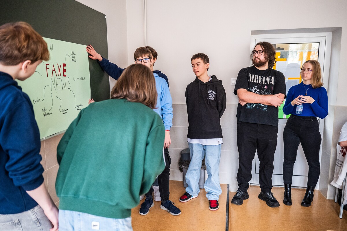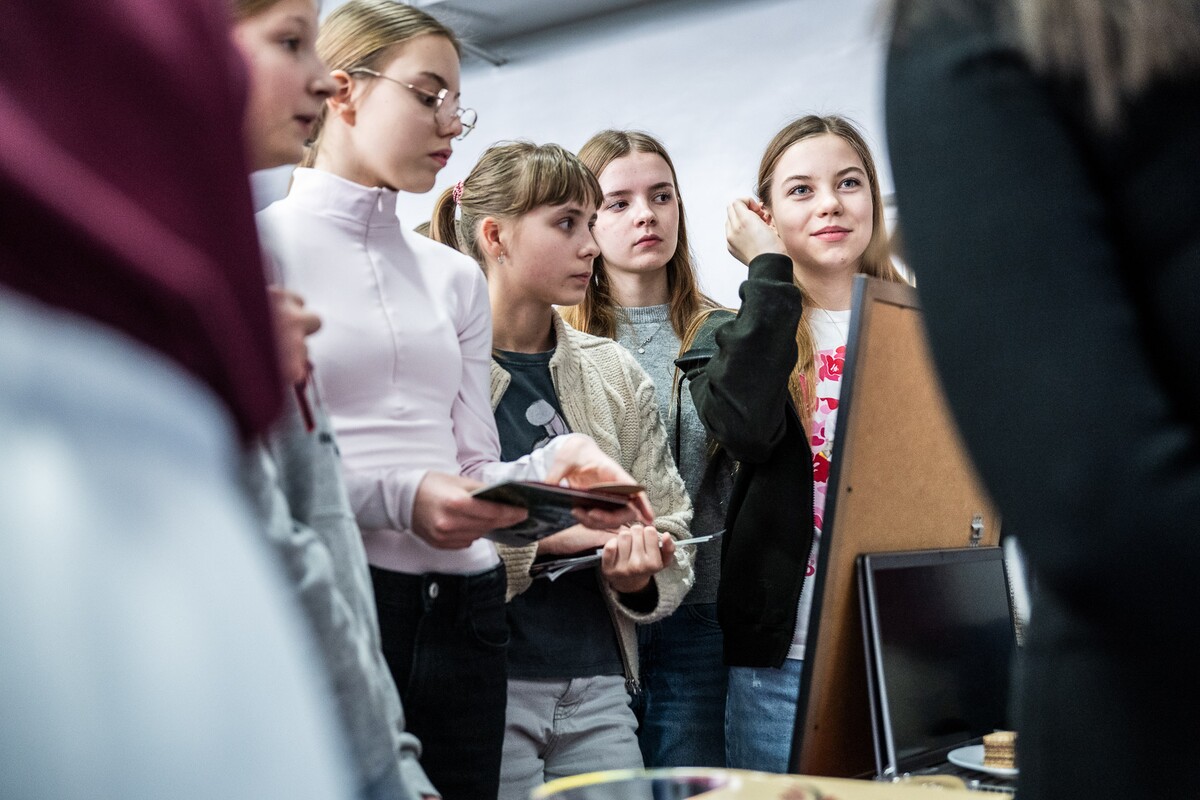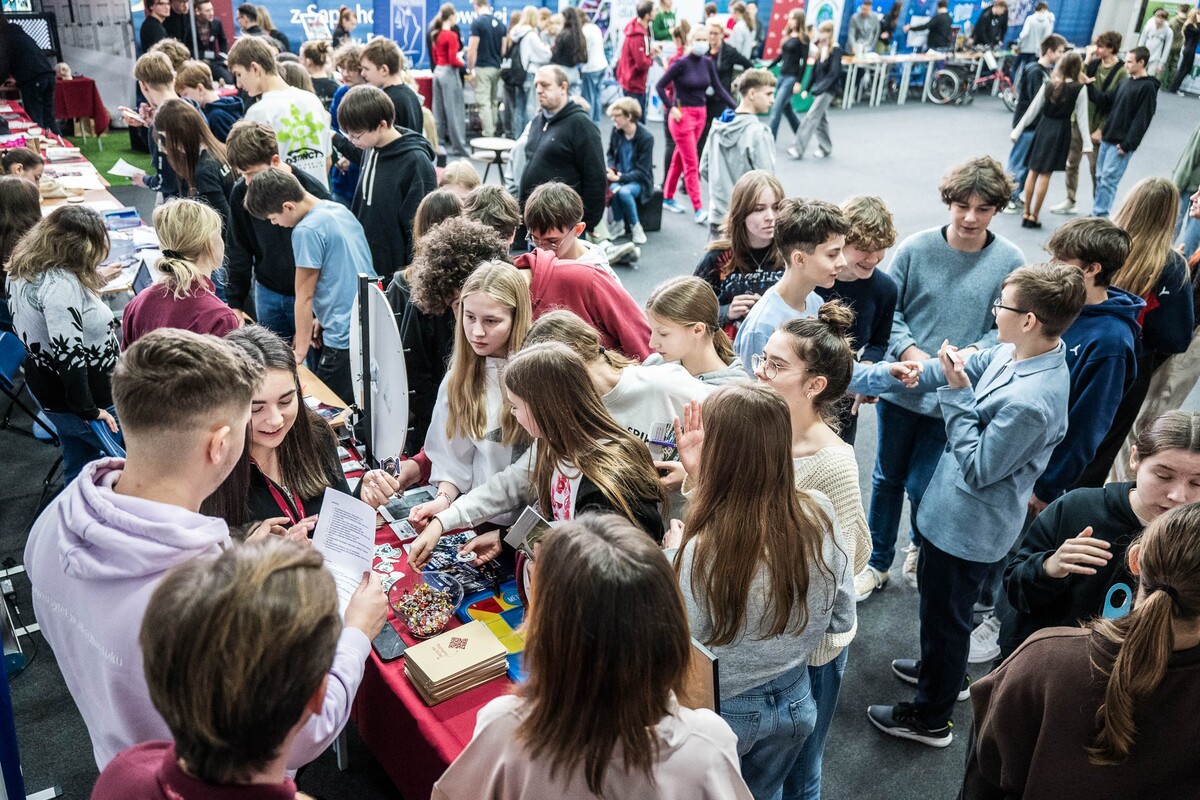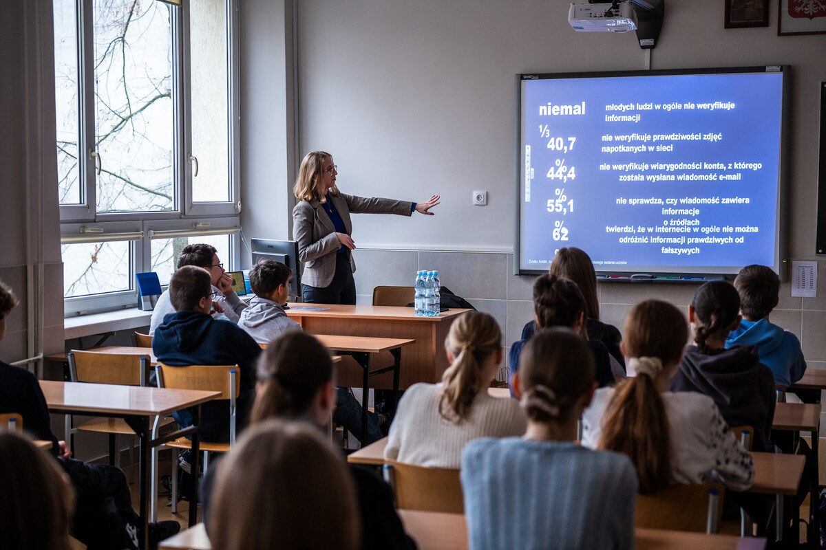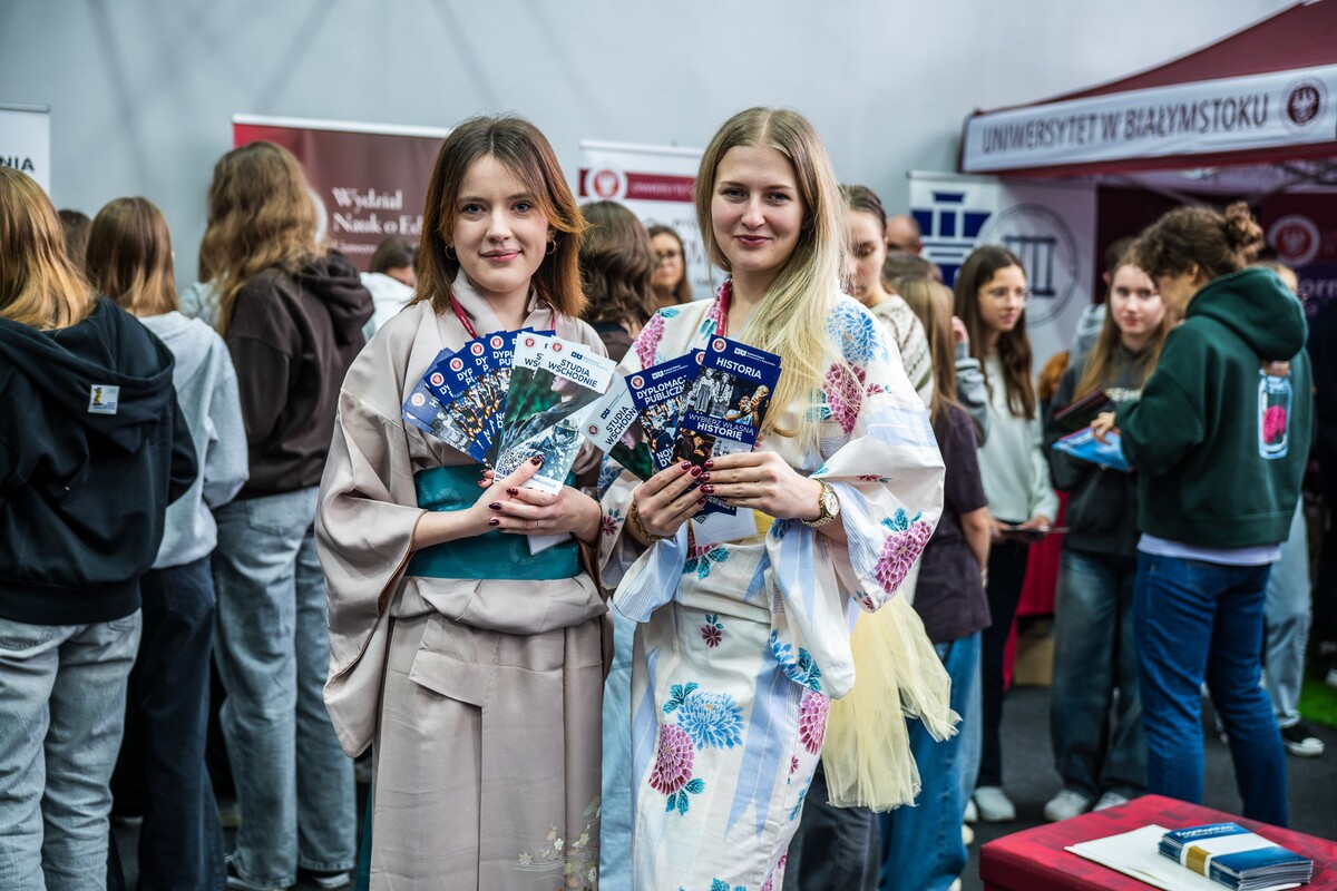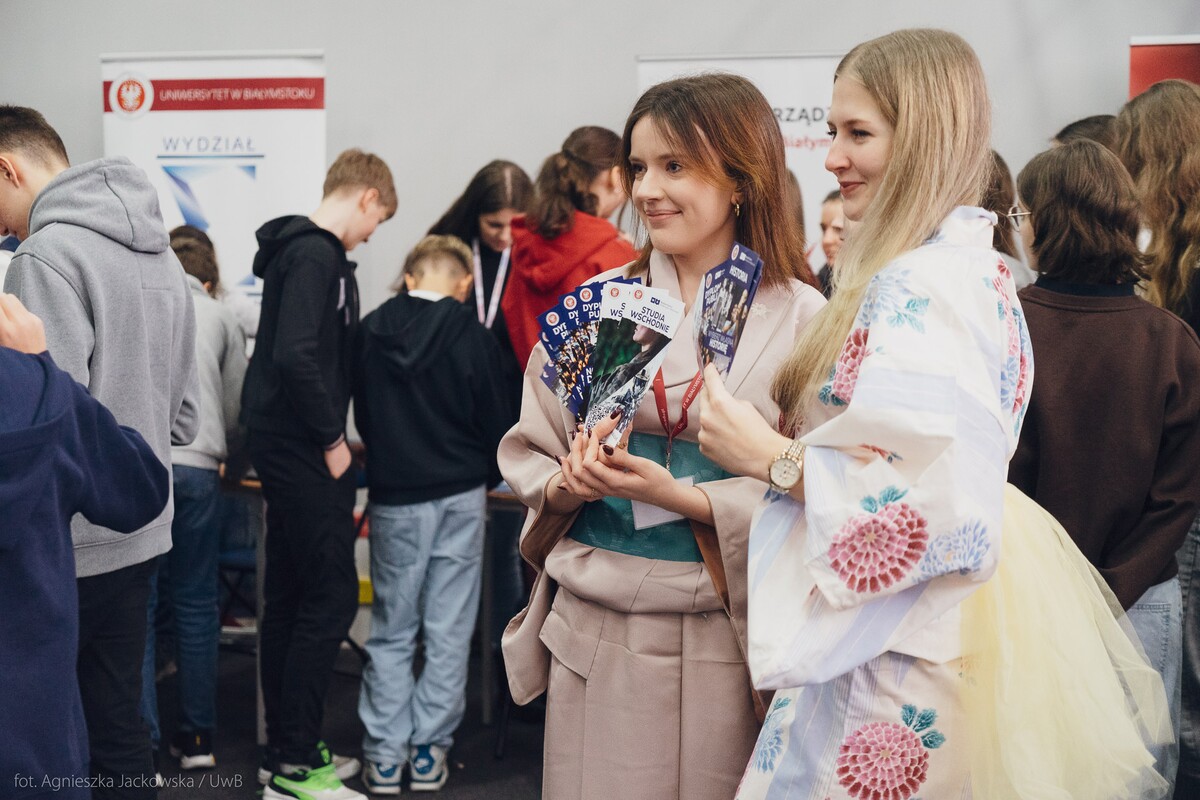 Wiele pytań, angażujących rozmów, interakcji. W czwartek, 23 stycznia reprezentanci 13 wydziałów Uniwersytetu w Białymstoku oraz Uniwersyteckiego Centrum Rekrutacji spotkali się z uczniami II LO im. Księżnej Anny z Sapiehów Jabłonowskiej w Białymstoku. Nasze stoisko cieszyło się olbrzymim zainteresowaniem. Uczniowie zadawali mnóstwo pytań, chętnie rozmawiali z naszymi studentami, brali też udział w aktywnościach, które przygotowały wydziały. W ofercie UwB były też ciekawe wykłady, które przyciągnęły tłumy młodych ludzi. Z Wydziału Historii zaprezentowali się: dr Tomasz Wesołowski w wykładzie pt. „ Wartość życia żołnierza: straty Armii Czerwonej w II Wojnie Światowej” oraz mgr Paweł Gawryluk i mgr Justyna Sikorska w warsztacie pt. Fejkoodporni – jak zbudować odporność na dezinformację?”. Młodzież wzięła udział w warsztacie dotyczącym zmiany imienia i nazwiska mgr Sylwii Łazuk – Baranowskiej pn.”Czy mogę nazywać się jak ktoś sławny?”. O dezinformacji opowiadał dr hab. Daniel Boćkowski, prof. UwB z Wydziału Stosunków Międzynarodowych, o współpracy i pracy zespołowej mówił dr Mariusz Citkowski z Wydziału Zarządzania. Wydział Fizyki reprezentował dr Łukasz Łabieniec. Opowiadał licealistom o sile nauki w leczeniu i diagnostyce oraz możliwościach, jakie dają studia fizyki medycznej.
