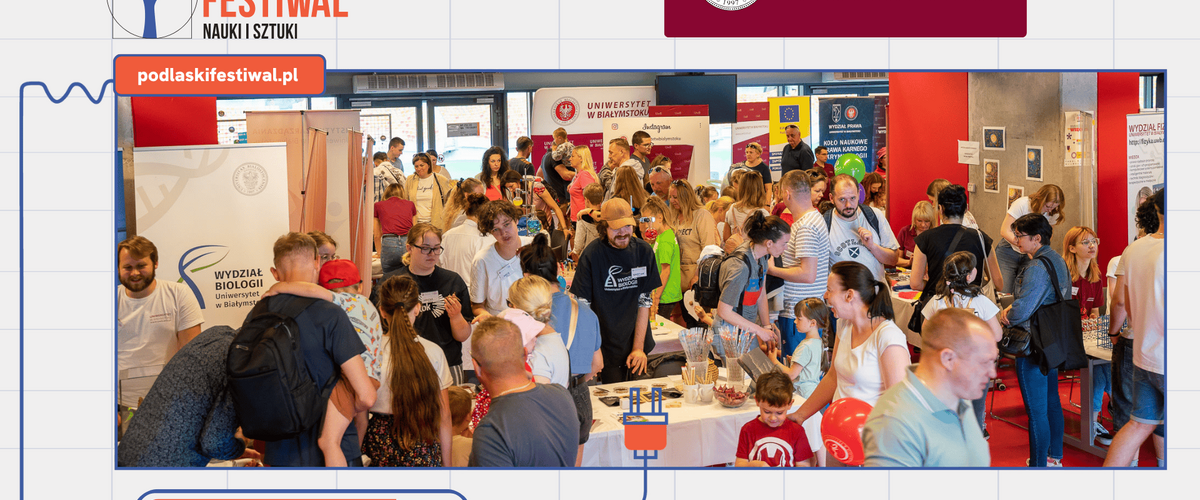 Podlaski Festiwal Nauki i Sztuki to największa, cykliczna impreza w Polsce północno-wschodniej, która w sposób przystępny i ciekawy zachęca do poznawania nauk ścisłych, technicznych, medycznych, przyrodniczych, humanistycznych i społecznych, a także upowszechnia tematykę i osiągnięcia uczelni białostockich, łomżyńskich i suwalskich. XXII Podlaski Festiwal Nauki i Sztuki kierujemy do wszystkich mieszkańców naszego województwa oraz Polaków z Wilna i okolic.