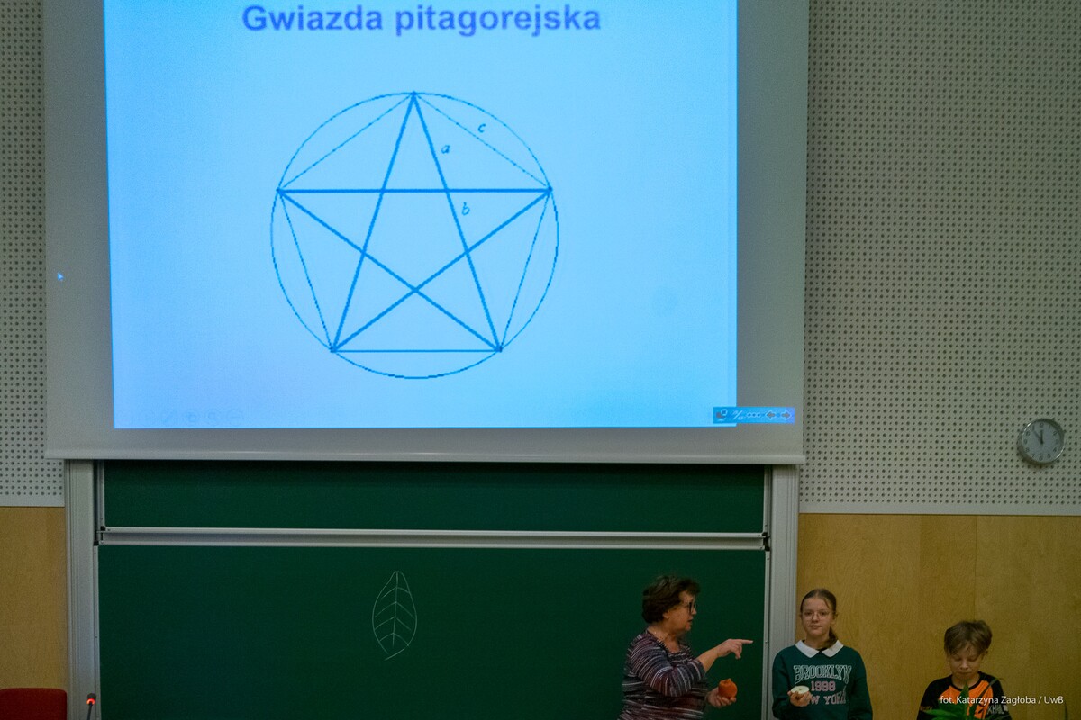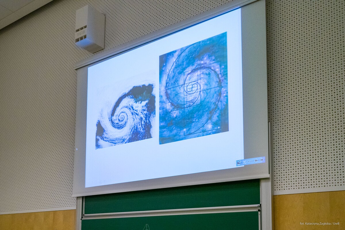 Jak wiele matematyki jest w naturze i działaniach ludzkich? Czy można odnaleźć geometrię w roślinach, zwierzętach i krajobrazach? Dlaczego natura jest taka mądra i tworzy dzieła bez wsparcia technologicznego? Pierwsza część zajęć poświęcona była geometrii. Pani dr Rybak, koordynator Centrum Kreatywnego Uczenia się Matematyki nawiązała do uczonych, którzy podjęli trud opisania językiem matematyki zjawisk wyrażonych językiem przyrody.