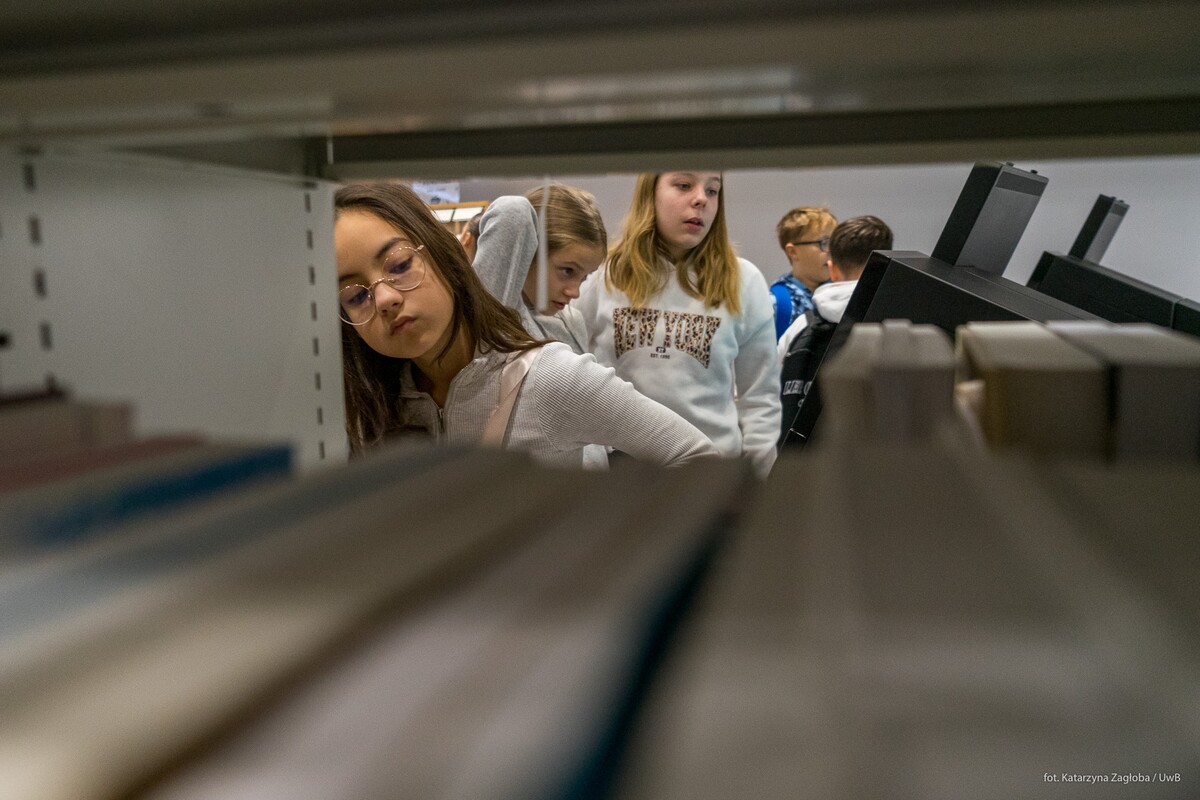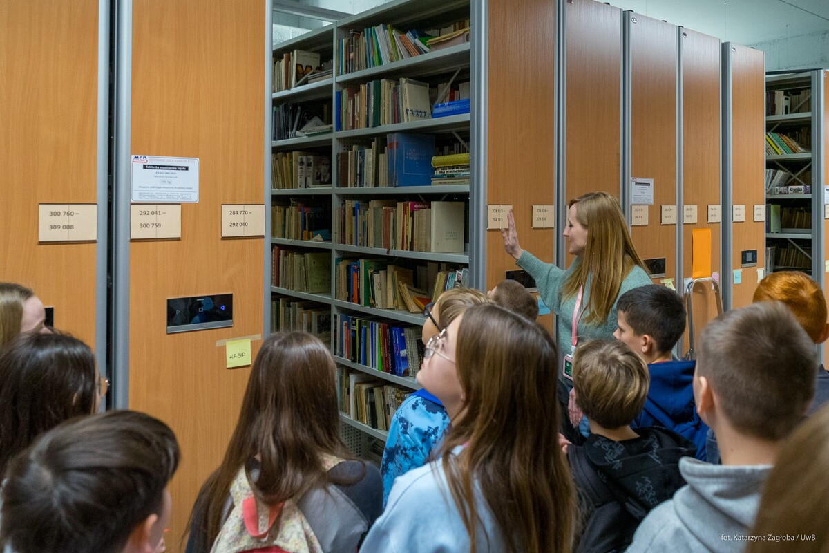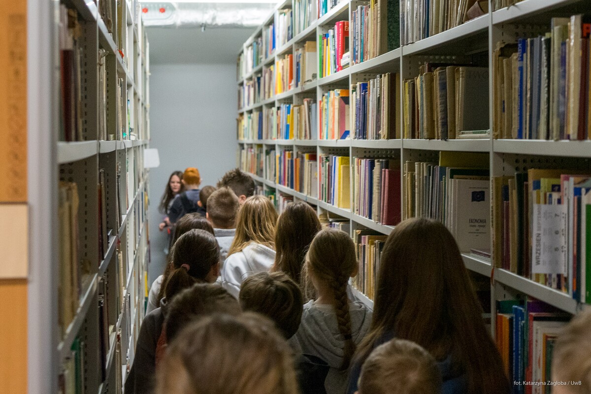 Dodatkowo pracownicy Biblioteki Uniwersyteckiej oprowadzili uczniów po Czytelni z Wolnym Dostępem oraz magazynach opowiadając o ciekawostkach związanych z pracą i zasobami biblioteki oraz uczelnią.