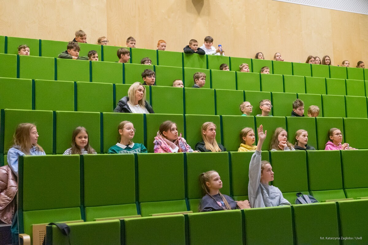 Rozbudzanie ciekawości i chęci do nauki już od najmłodszych lat? Uniwersytet w Białymstoku intensywnie wspiera kształtowanie takich postaw wśród uczniów szkół podstawowych. We wtorek 10 grudnia dwie klasy piąte ze Szkoły Podstawowej nr 51 im. Ludwika Zamenhofa wzięły udział w bardzo ciekawych zajęciach języka angielskiego oraz matematyki, dodatkowo zwiedziły Bibliotekę Uniwersytecką i przestrzenie kampusu.