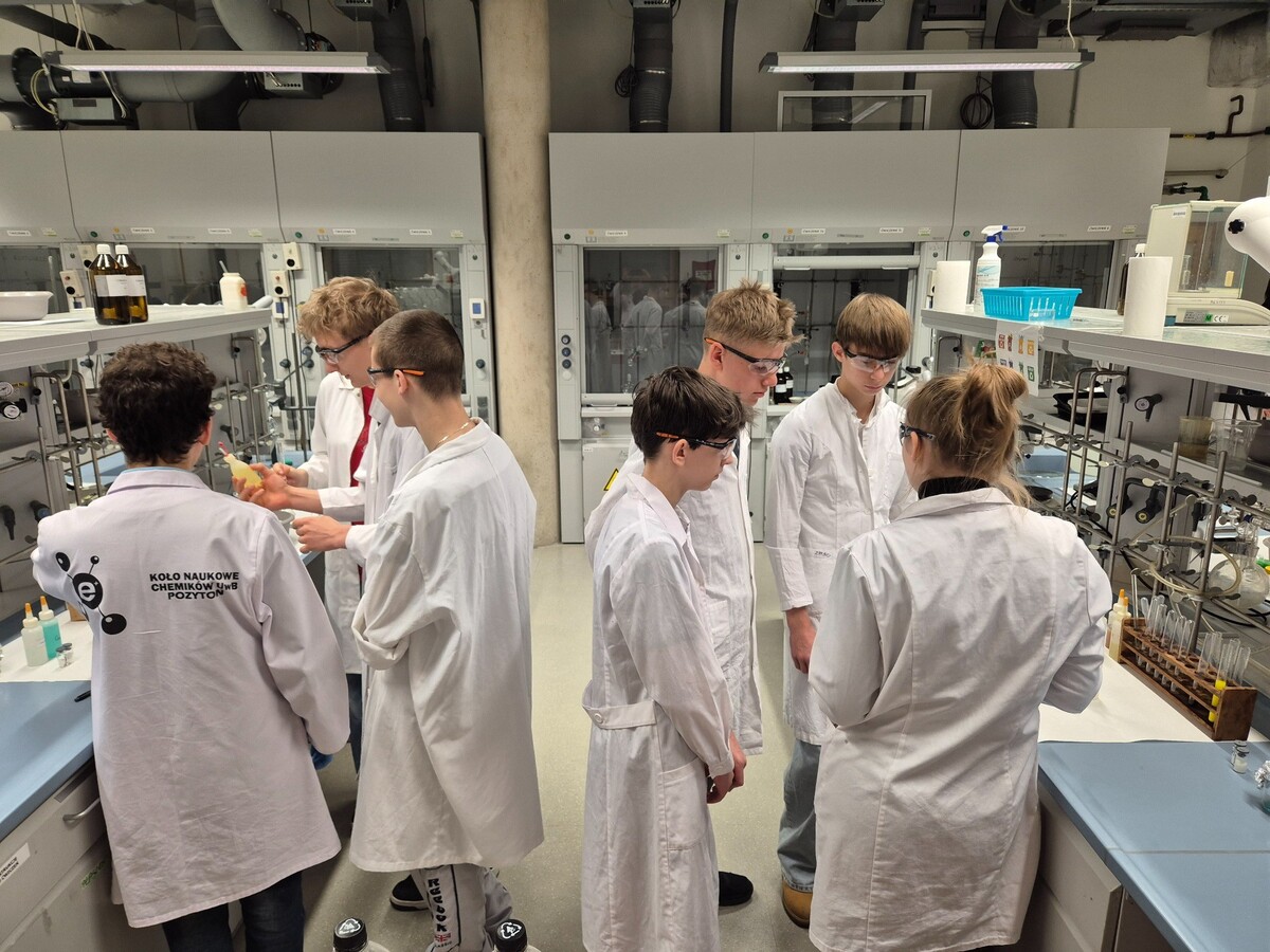 Członkowie Koła Naukowego Chemików „Pozyton” pod opieką dr. Pawła Misiaka poprowadzili zajęcia „Eksperymenty, których nie zrobisz w szkole: Chemia dla klas 7 i 8”. Uczniowie mogli samodzielnie przeprowadzać doświadczenia związane z reakcjami chemicznymi, rozdzielaniem mieszanin, właściwościami kwasów i zasad, a także obserwować reakcje spalania.
