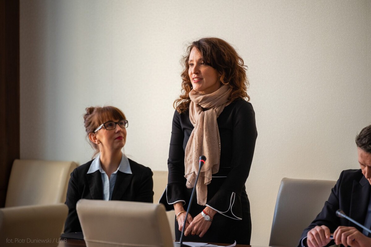 Z kolei uczelnię, obok prorektor Jolanty Muszyńskiej, reprezentowali: prorektor ds. kształcenia dr hab. Krzysztof Korotkich, prof. UwB, przedstawiciele Wydziału Prawa: dziekan prof. Mariusz Popławski, prodziekan dr hab. Izabela Kraśnicka, dr Małgorzata Wenclik, dr Wioleta Hryniewicka-Filipkowska oraz kierownik Centrum Popularyzacji Nauki UwB Dorota Sawicka.