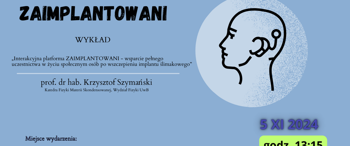 Podczas spotkania zostanie zaprezentowana platforma ZAIMPLANTOWANI stworzona z myślą o wspieraniu pełnego uczestnictwa w życiu społecznym osób po wszczepieniu implantu ślimakowego. Aplikacja ta (https://zaimplantowani.fizyka.uwb.edu.pl) dostępna na urządzenia mobilne i komputery, jest specjalistycznym narzędziem mającym na celu poprawę percepcji wysokości i barwy dźwięku u zaimplantowanych osób. Przedstawimy również system ochrony danych wrażliwych, metodologię analizy danych oraz wyniki badań zarówno osób z implantami, jak i grupy kontrolnej. Jednym z ciekawszych wyników badań jest wysoki odsetek osób poprawnie słyszących, które mają trudności z wykonaniem prostych testów muzycznych, stosowanych w rehabilitacji zaimplantowanych pacjentów. W czasie seminarium planujemy krótkie wystąpienia użytkowników, którzy opowiedzą o swoich doświadczeniach na platformie.